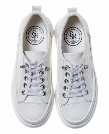 白いスニーカーはシンプルで、どんなアイテムにもあわせやすい優れもの。 |
