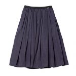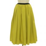 明るめのカラースカートには、ダークカラーを合わせると上品にすっきりとまとまります。