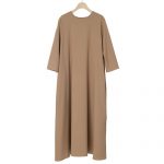 ワンピースとスニーカーを同色にしたきれいめワントーンコーデ。