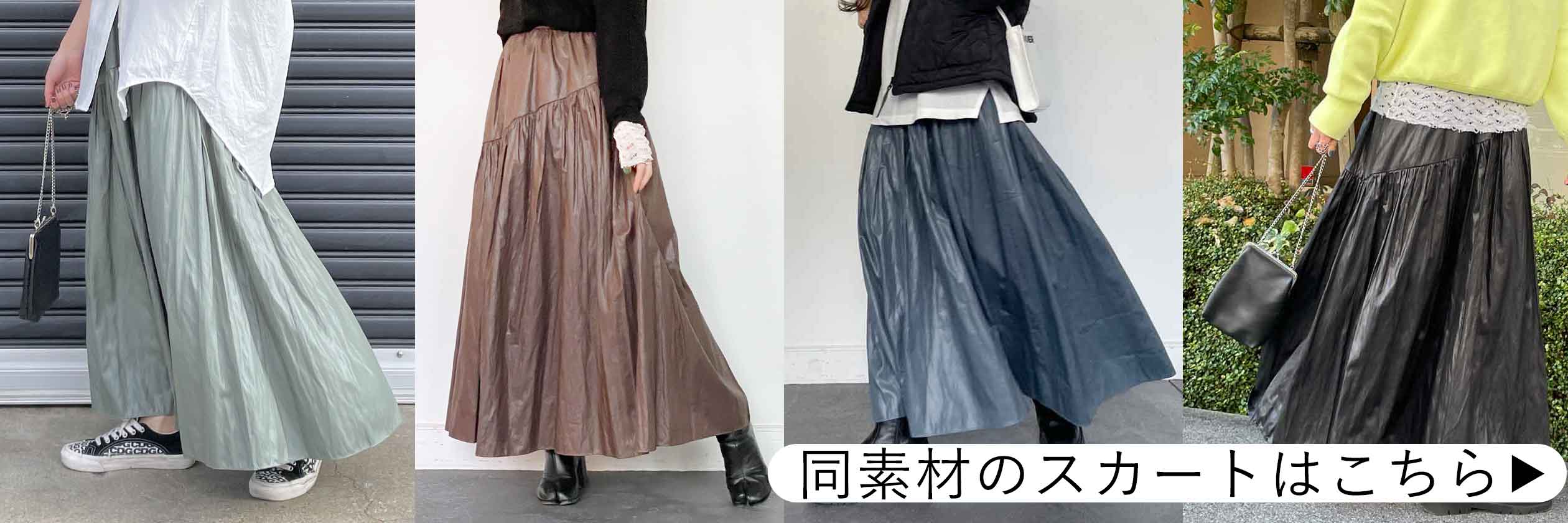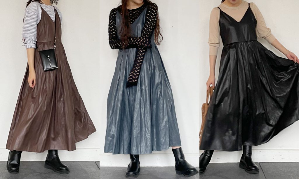 大人気チンツ加工切替デザインスカートと同素材のキャミワンピースが新登場!