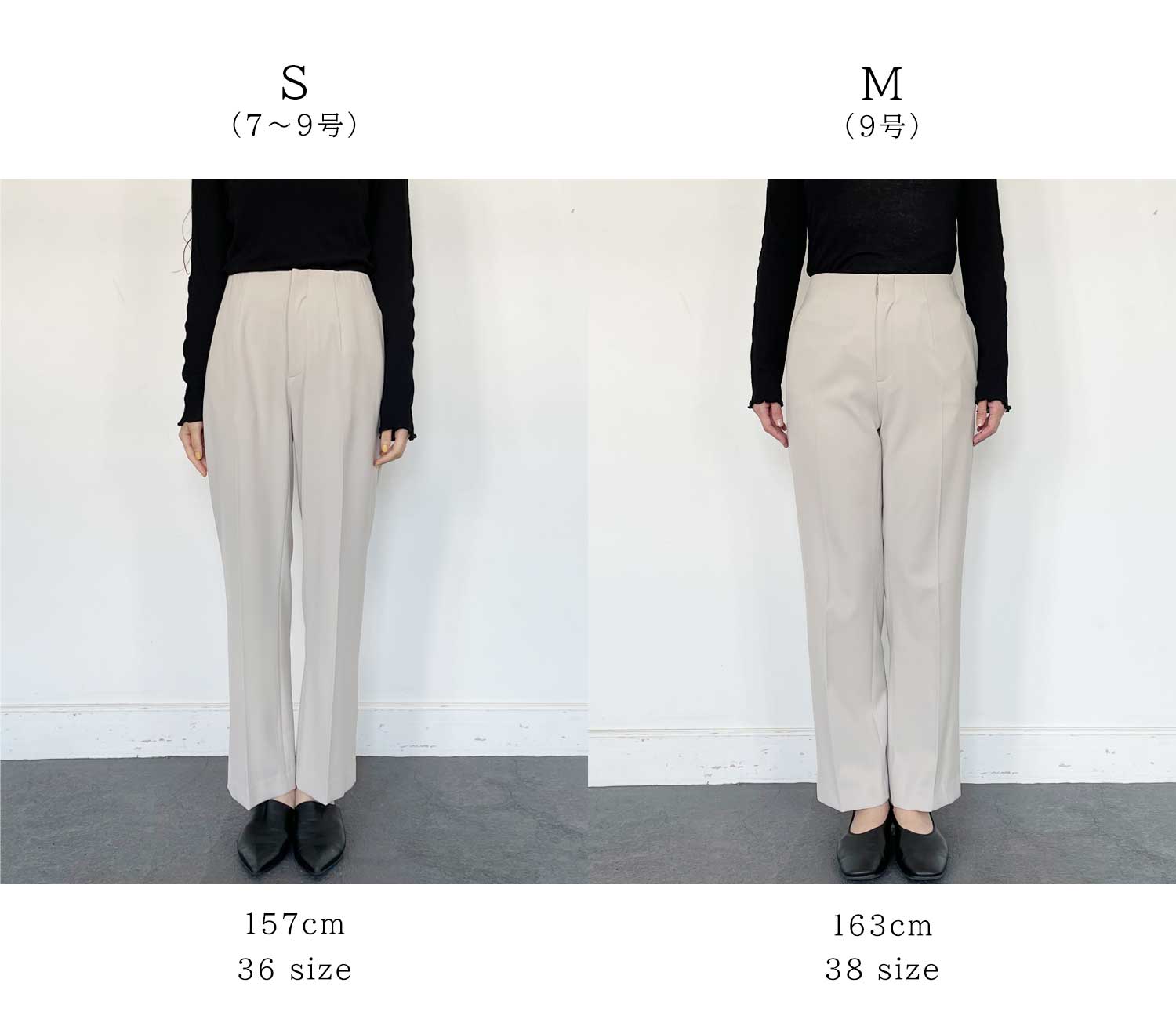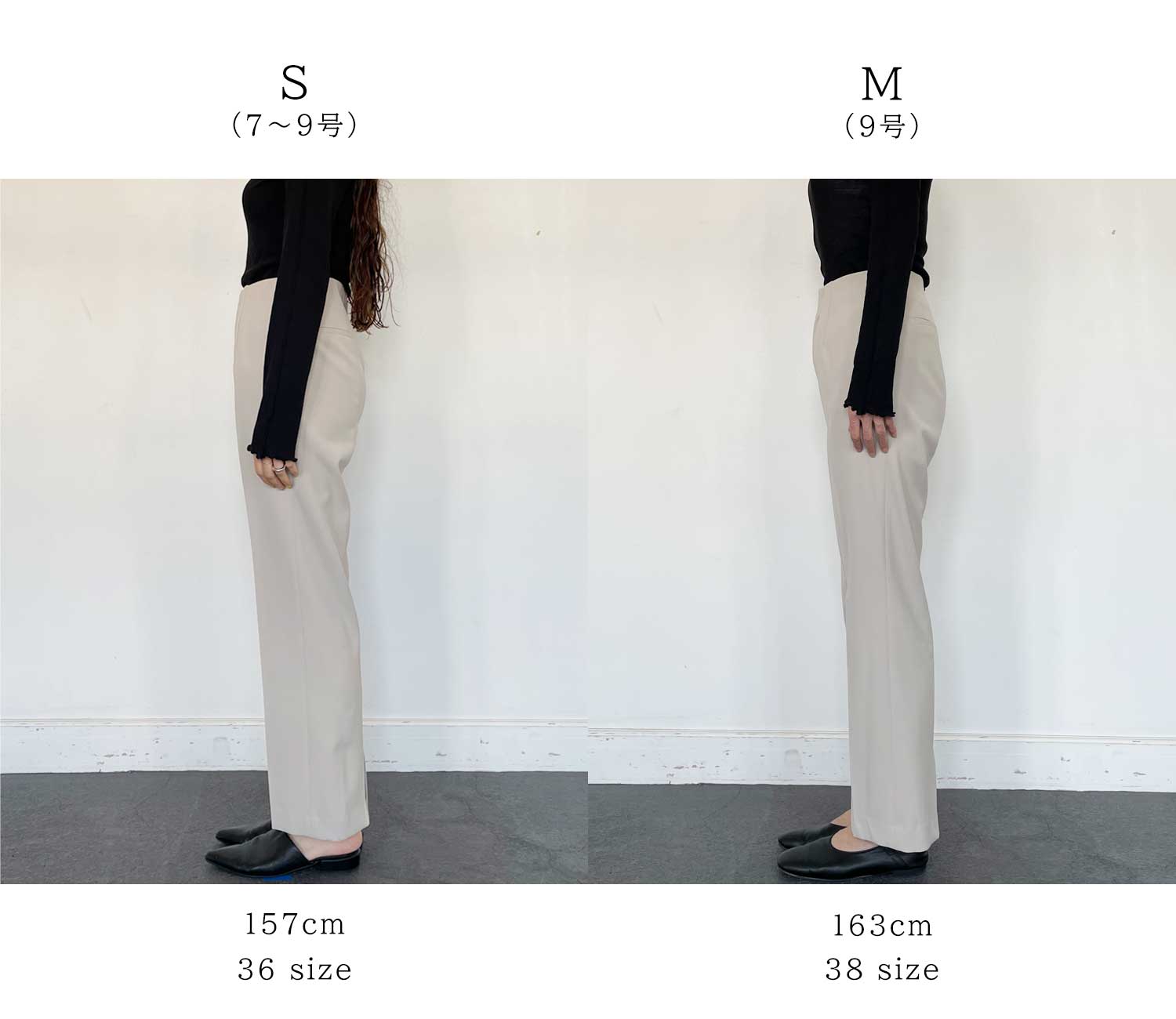 見た目はスッキリとキレイ見えしますが、ウエストの内側に使用している太巾ゴムが腰にフィットしてくれるのでとても楽な穿き心地です。