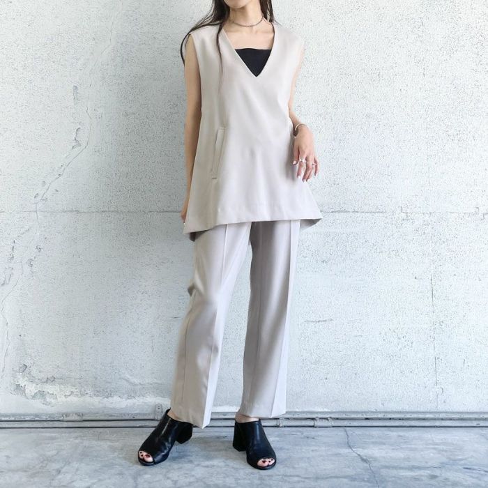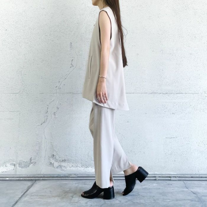 単体でも着回しの効く1枚ですが、同素材のベストとのセットアップでオケージョンにもつかえます。