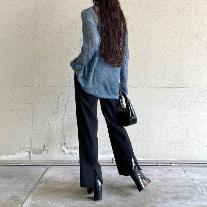 裾の後ろスリットがアクセント 【特別価格】バックスリットパンツ(2色)