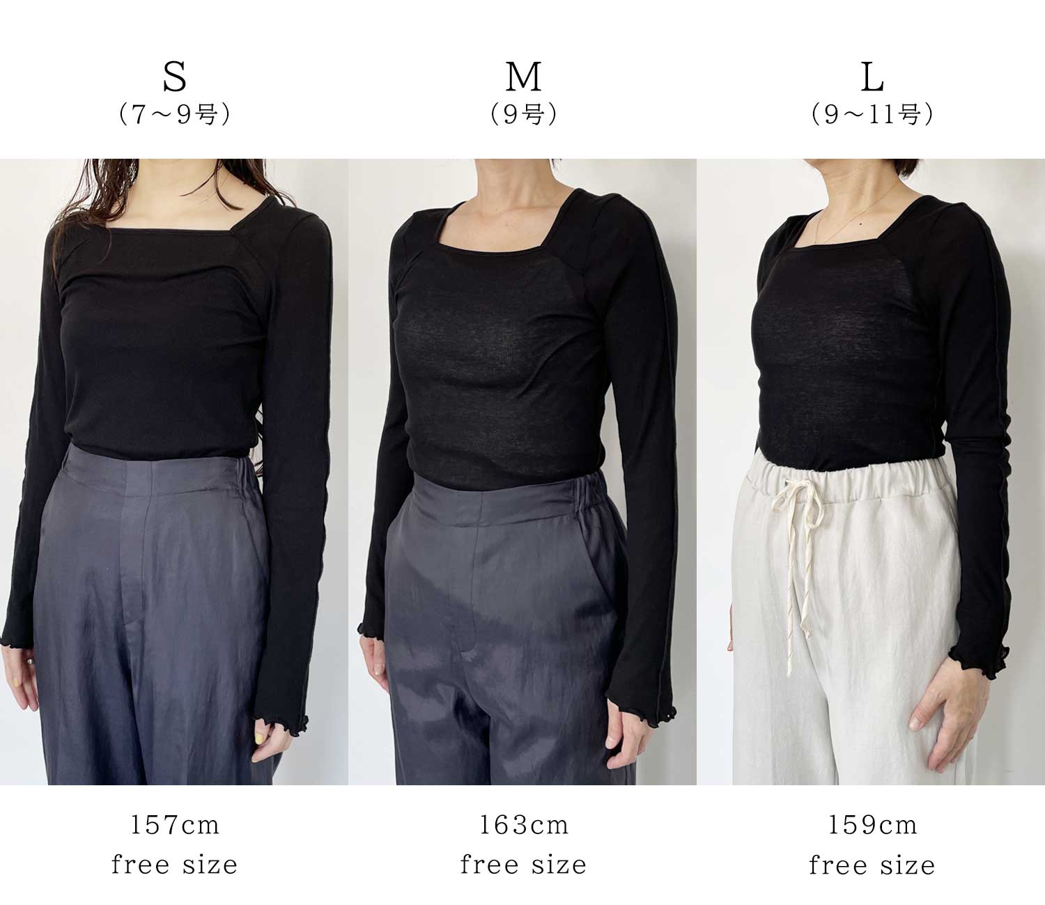 ネックは広すぎないスクエアネックにしており、胸元を気にせず更に着やすいデザインに仕上げました。