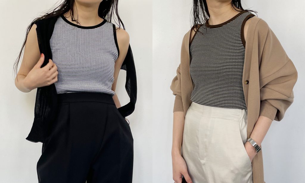 細い配色ボーダーが1枚でもインナーとしてもアクセントになり、下着の紐も見えにくい程よいアメスリデザインなのもオススメポイントです◎