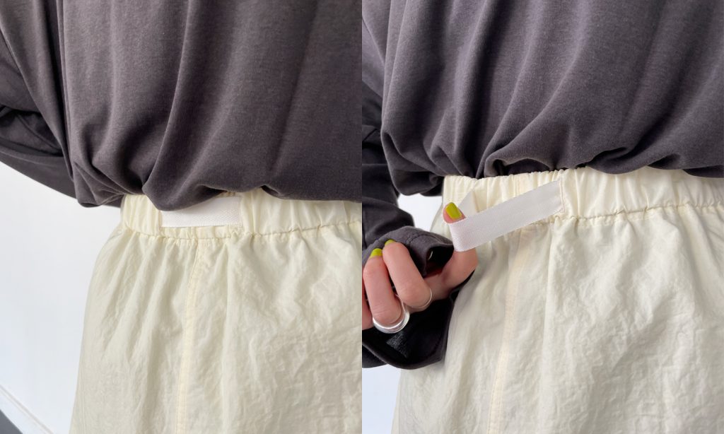 ヒップ周りもゆったりシルエットで、インするときはトップスの厚みに合わせてウエストを調整できるのもオススメポイント◎