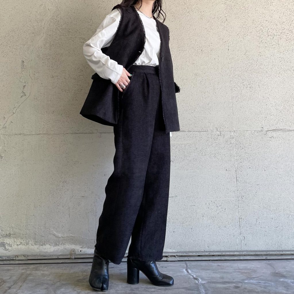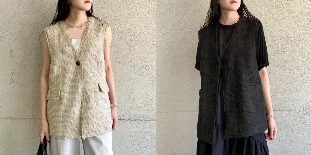同素材を使用したフリンジベストとのセットアップコーディネートもオススメです。