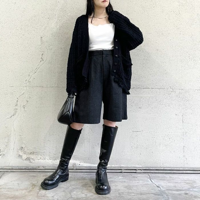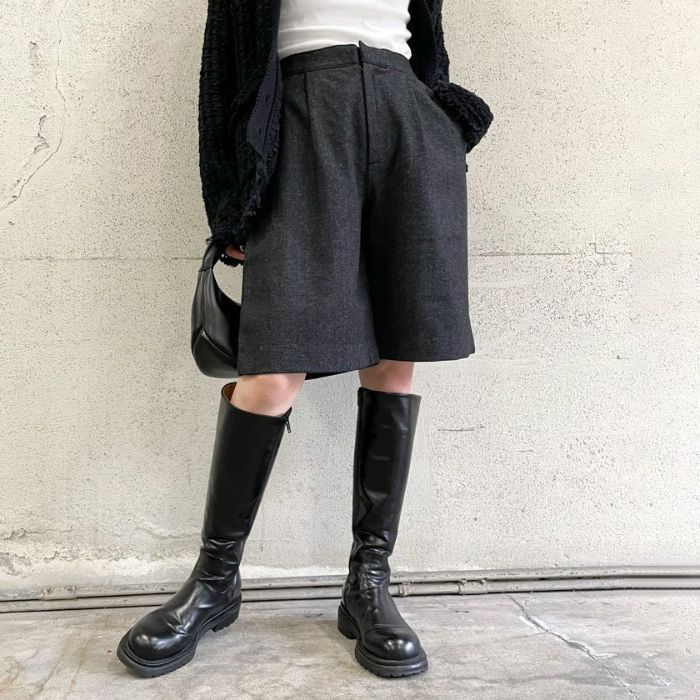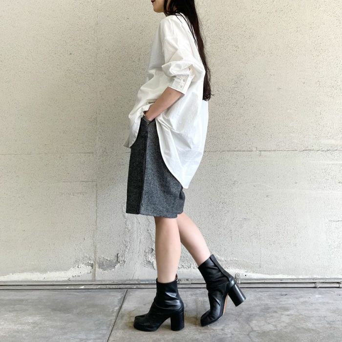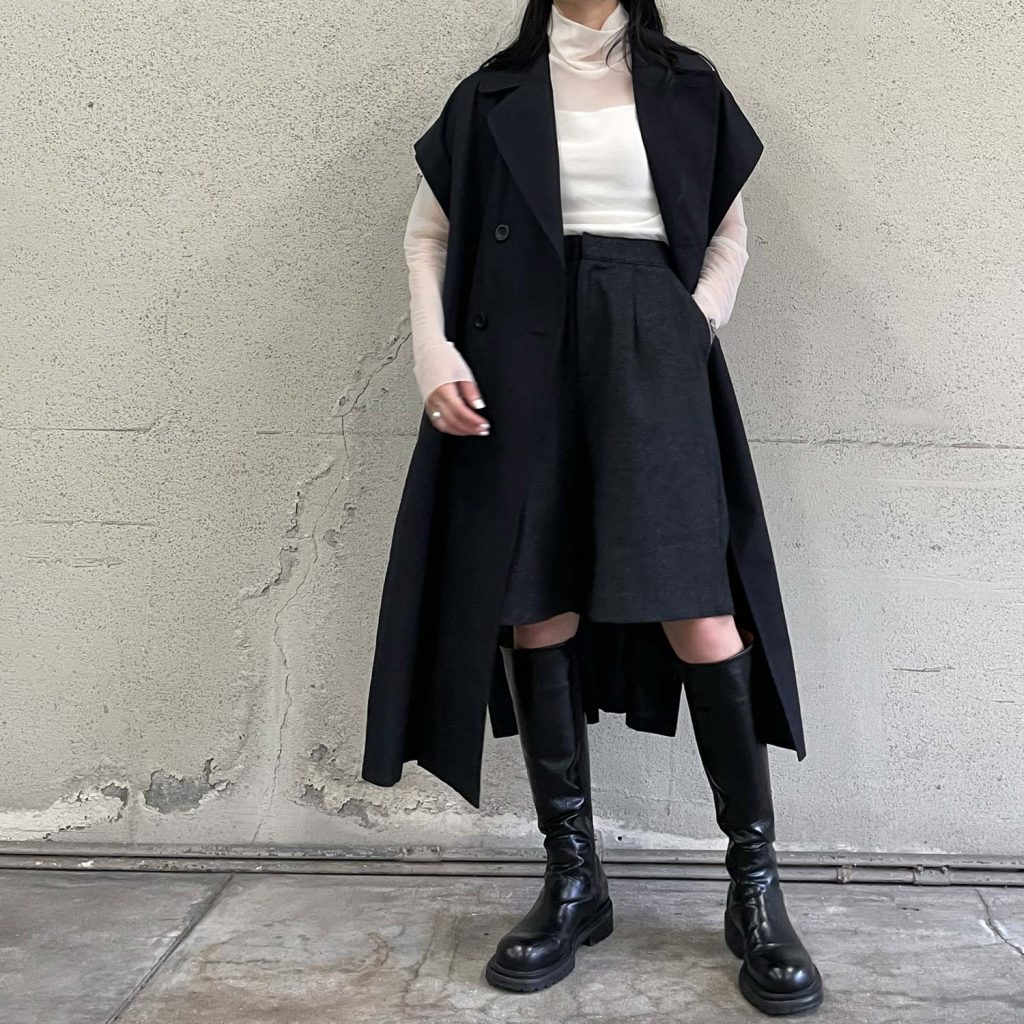 同素材のジャケットとのセットアップや、ブラウスやシャツなどとキレイ目に合わせるのがおすすめです。