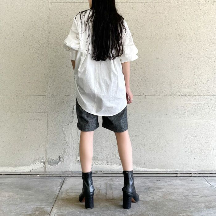 程よいハーフ丈で大人っぽく着られて、ボーイッシュになりすぎないように裾にタックを入れて広めにデザインしており、大人の女性も着用しやすいデザインに◎