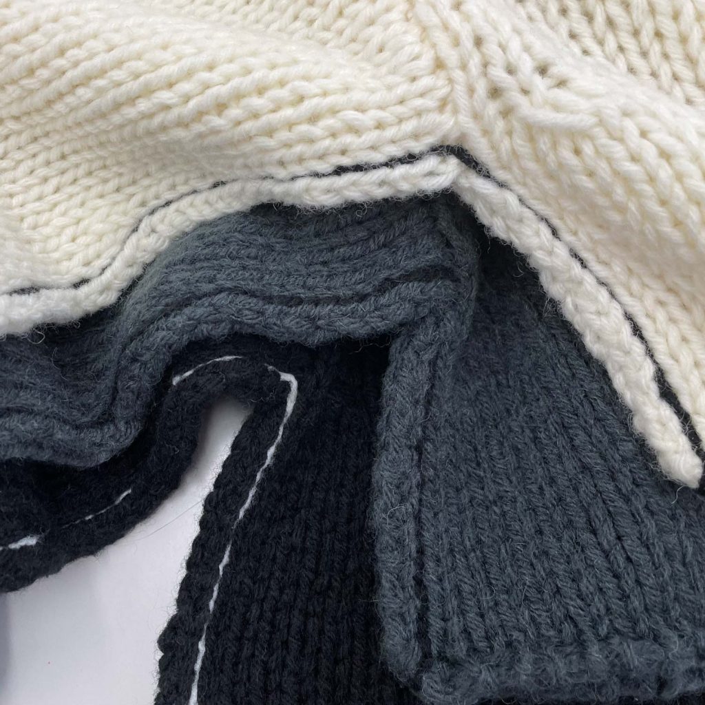 ボリューム感はありますが、柔らかな風合いなので、袖元に余裕のあるアウターなら十分着ていただけます。