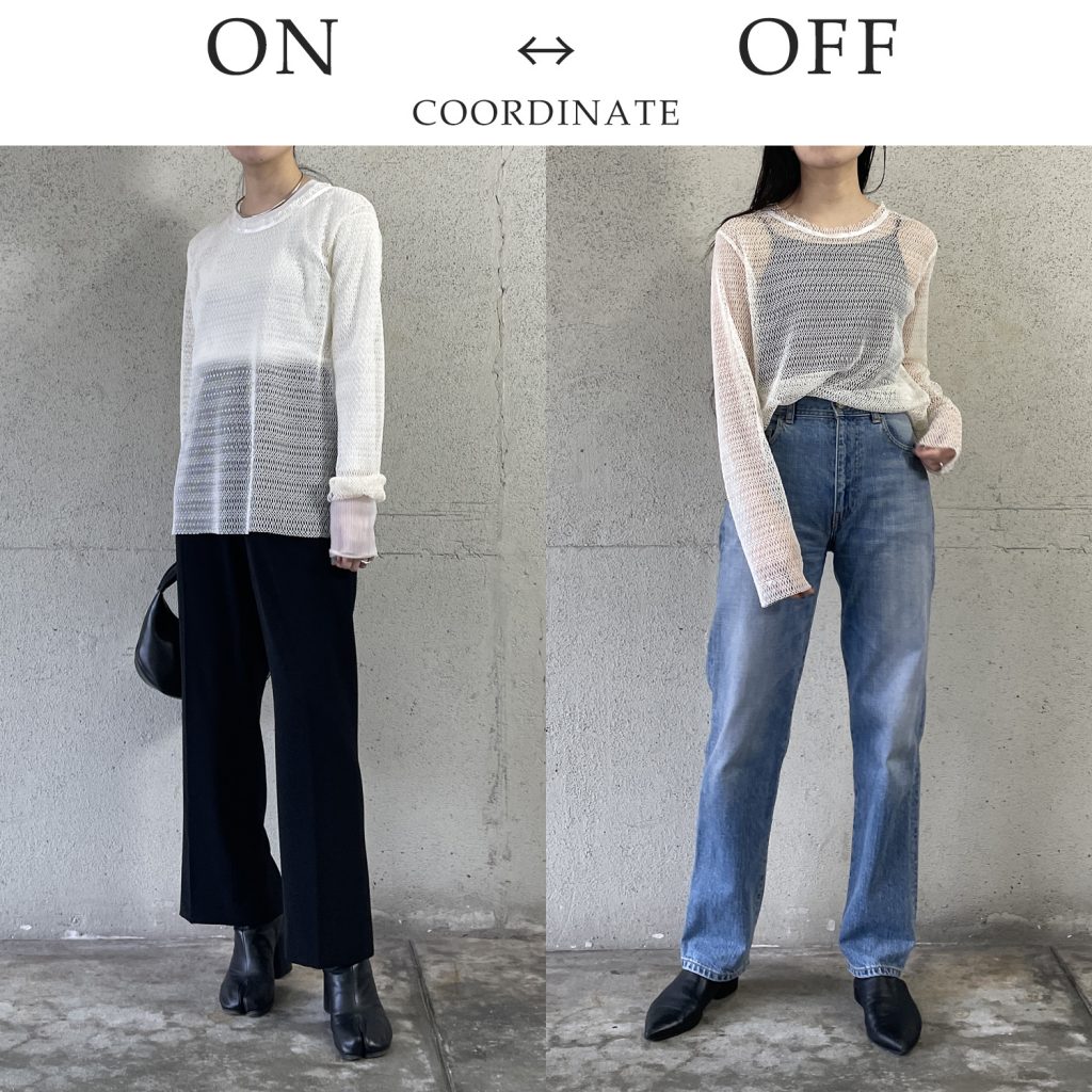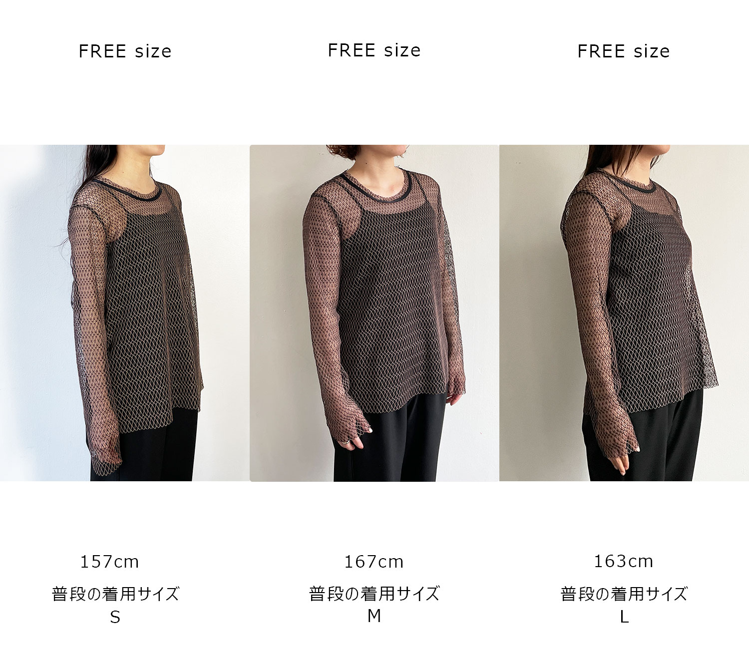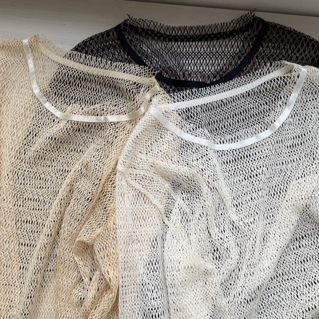 カラーは『ivory / beige / black』の3色展開。 ダブルラッセル機で編んだメッシュのようなレース素材 透け感が強すぎない編地で、大人の女性も取り入れやすいデザイン。