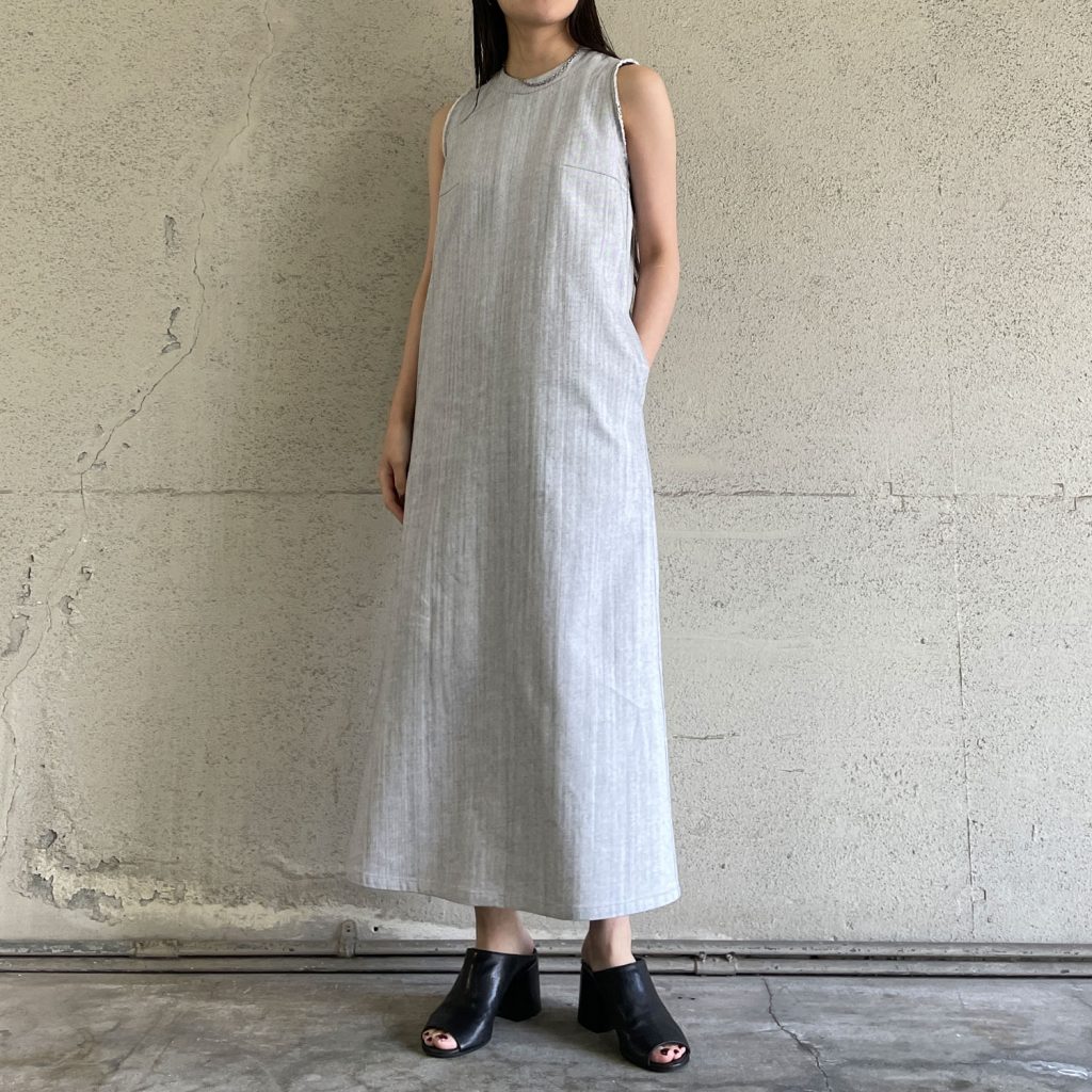 ムラ感のある色味と、表と裏面で色の見え方が違うのが特徴のデニム素材を使用したワンピース。