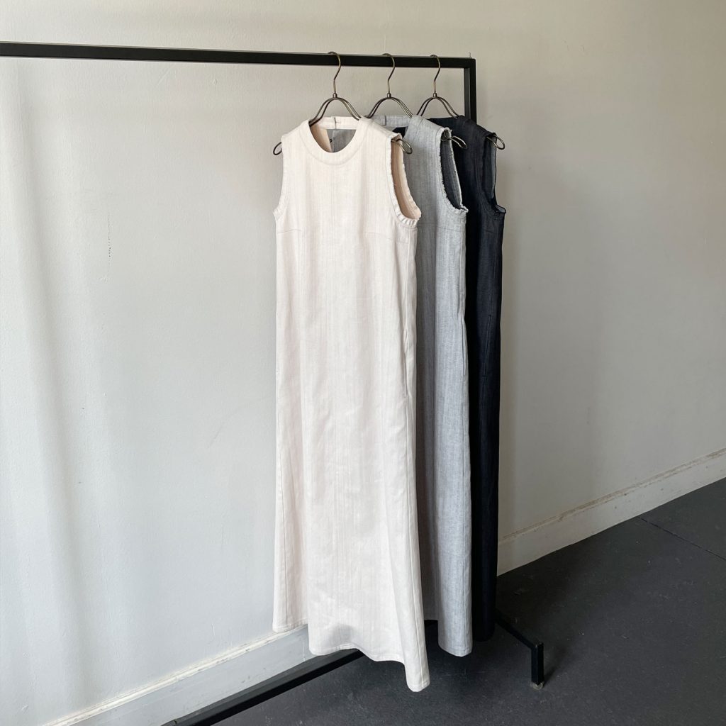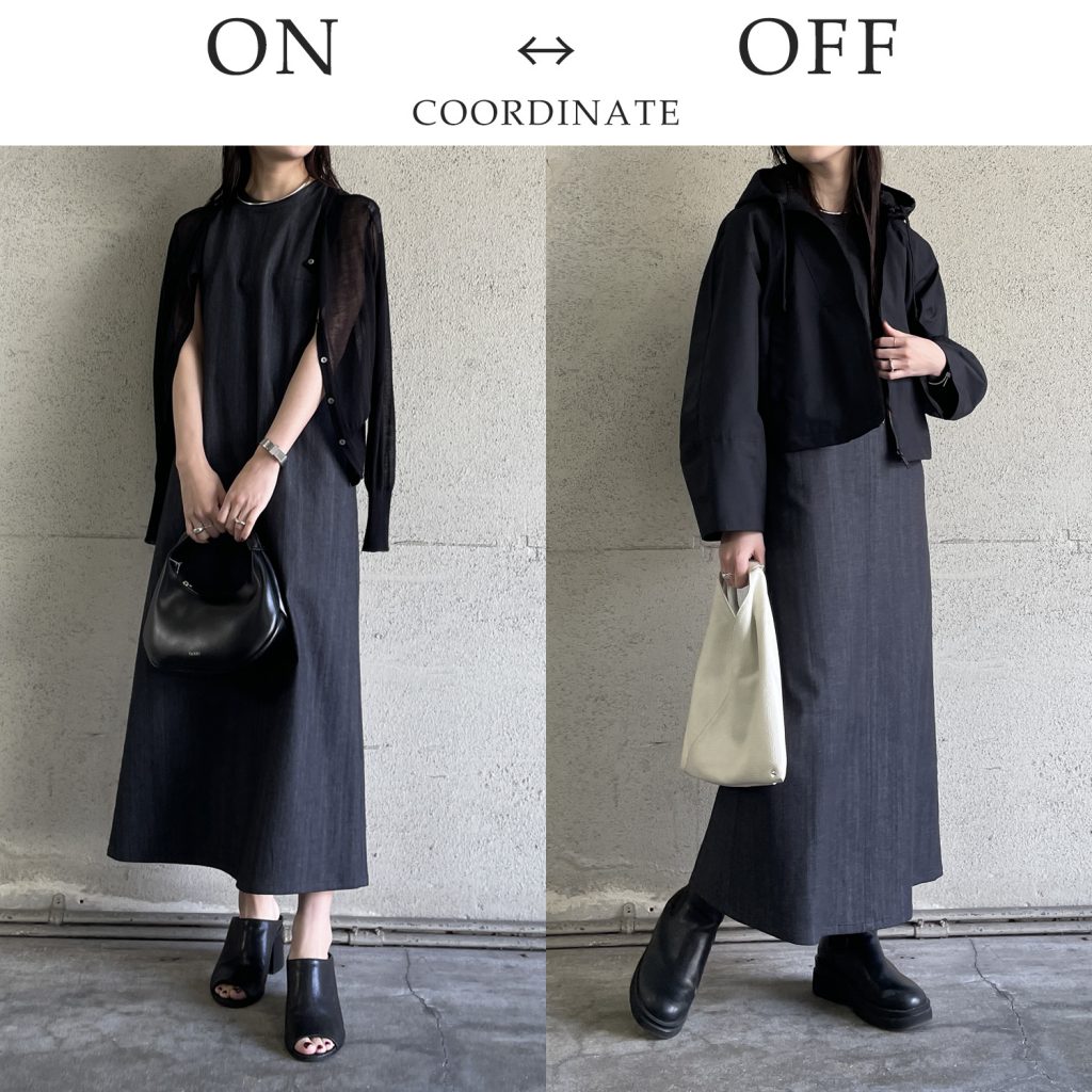 カラーは『ivory / lightgray / black』の3色展開。 程よくゆとりがありながらもすっきりとしたシルエット ストレッチ性があり、肉厚すぎず適度にハリ感のあるデニム素材を使用し、デニムワンピースでも動きやすく仕上げた一着。