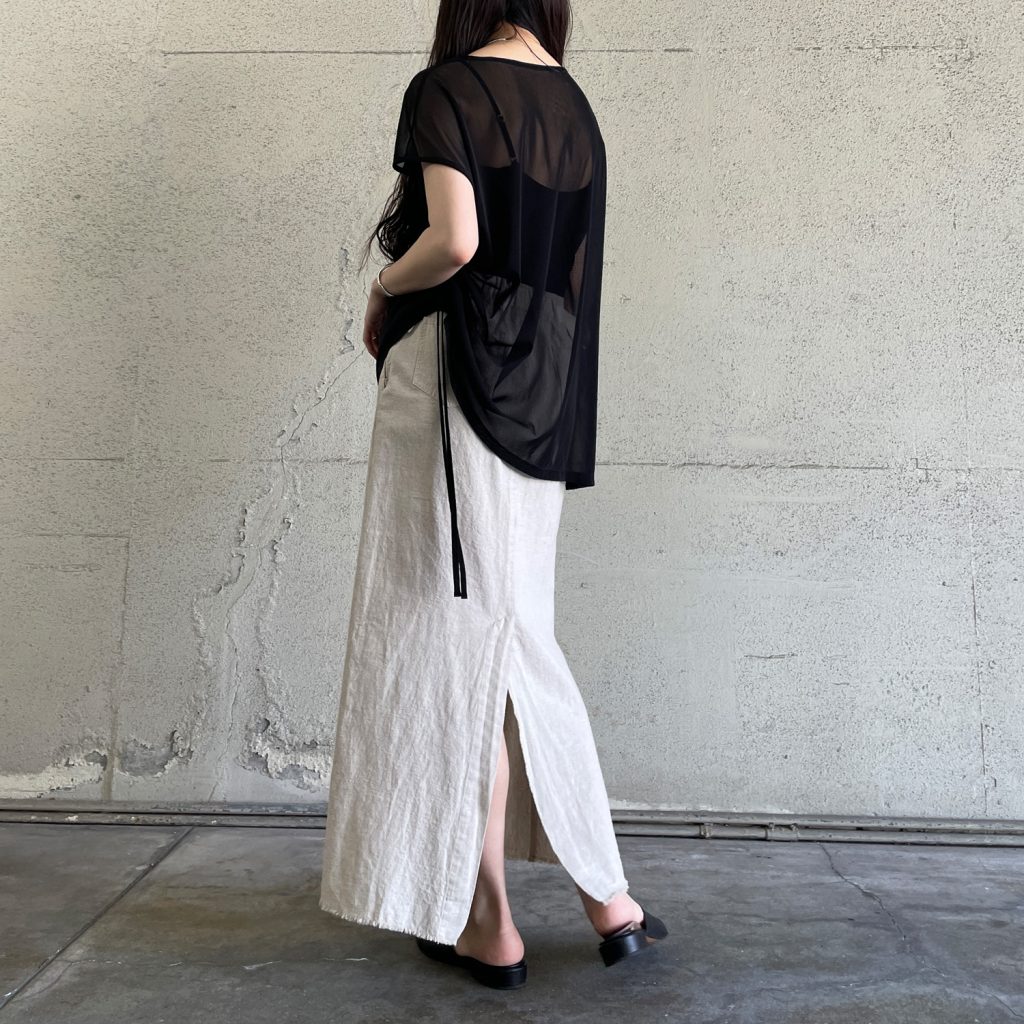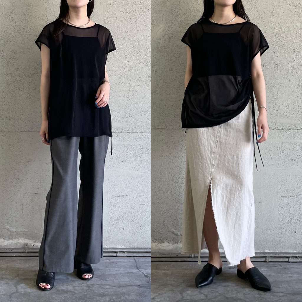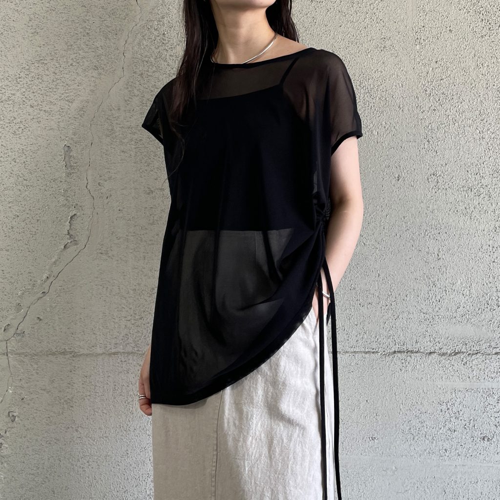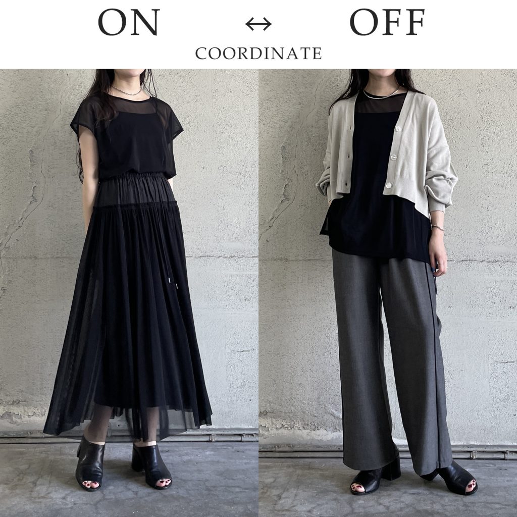 チュールの程よいシアー感がコーディネートのアクセントになる1枚です。