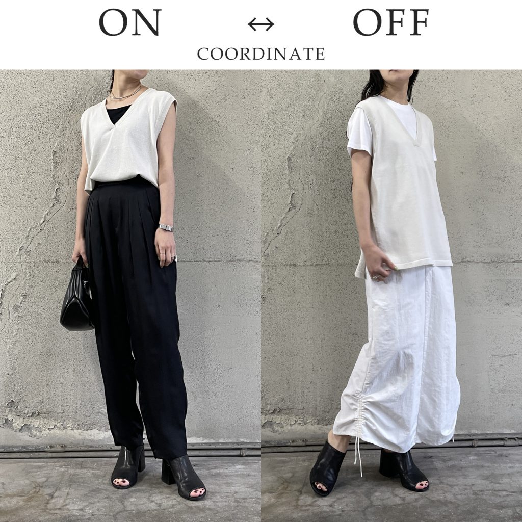 Tシャツ合わせから、夏場はノースリーブとしてロングシーズン着回せ、同素材のパンツと合わせてリラクシーなセットアップスタイルも◎