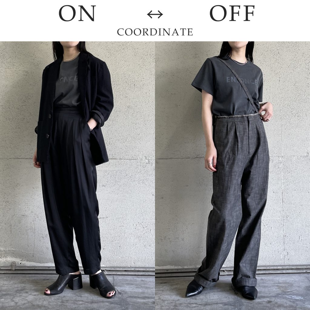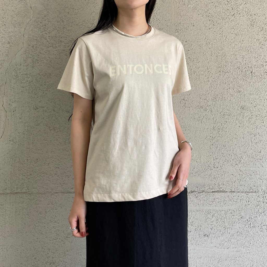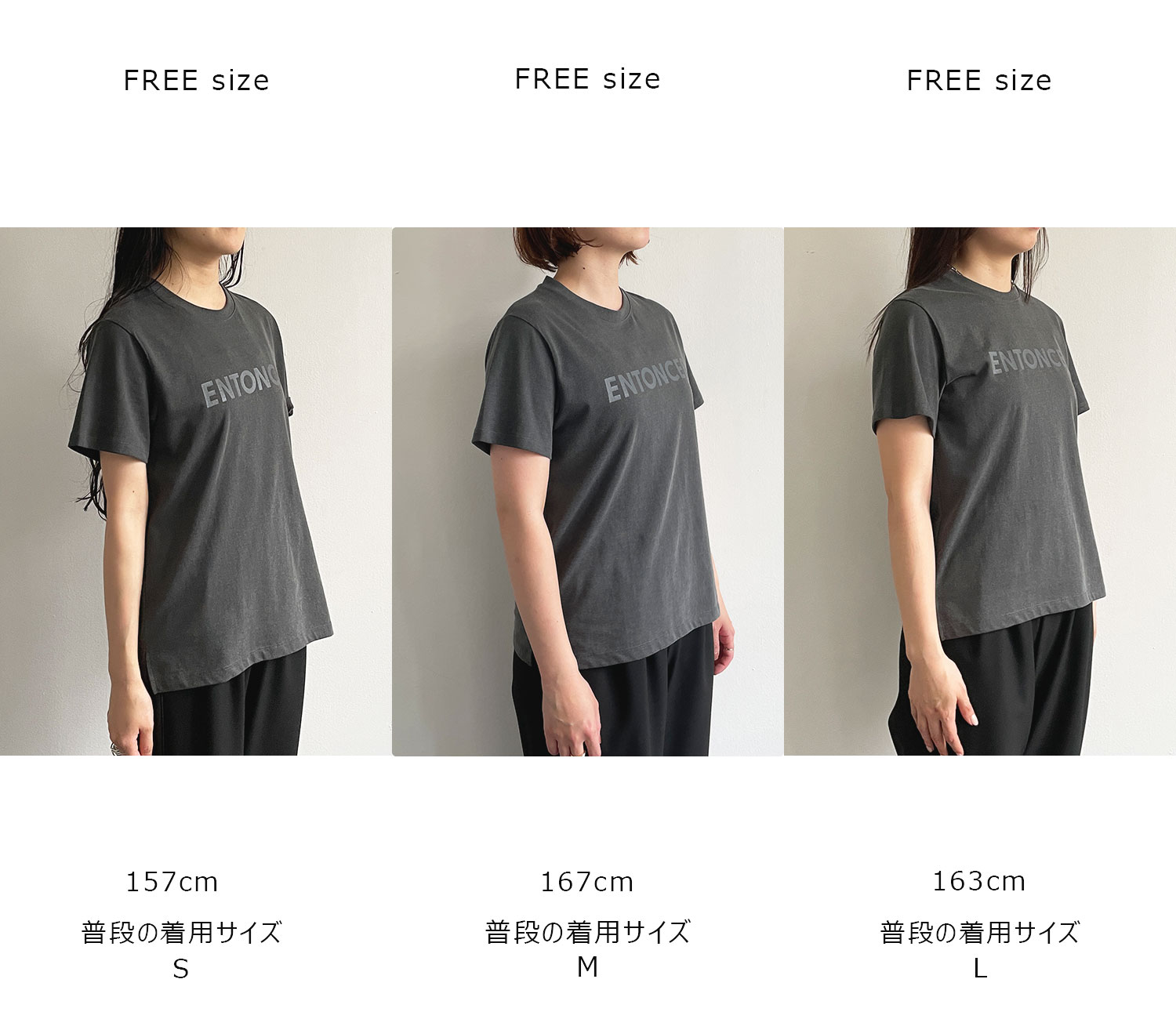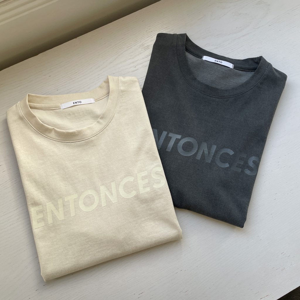 ※セール品は不良品以外の返品・交換不可 ヴィンテージライクな雰囲気のある風合いで、さり気ないプリントを施したロゴTシャツ。 カラーは『ivory / sumikuro』の2色展開。 特殊な染色加工で、ヴィンテージライクな生地感に 綿100%の素材をヴィンテージライクに仕上げ、透けにくく柔らかな着心地。 洗っていくにつれ少しずつ色落ちしていき、より雰囲気がでるので、風合いの変化も楽しんで頂けます。 洗濯機で洗えて日常使いしやすいのも嬉しいポイント◎ 後ろは「ENTO」のブランドロゴをさり気なくプリント フロントと後ろネックには発色の良いハーフラバープリントでロゴを印字。 スミクロはあえてさり気なく見える同系色でプリントを施しました。 ※「ENTONCES」...ブランドネームの起源であるスペイン語で<それなら、その時> ロゴTをあまり着ない方にも取り入れていただきやすい色味や文字バランスにこだわりました。 身体にフィットしすぎないサイズ感で、チュールやシアーアイテムなどをレイヤードするスタイルもおすすめ。 ジャケットなどキレイ目なアイテムに合わせてカジュアルダウンにも、デニムなどカジュアルなアイテムに合わせておでかけにも。 着回し力抜群のアイテムで、1枚持っていれば重宝します。