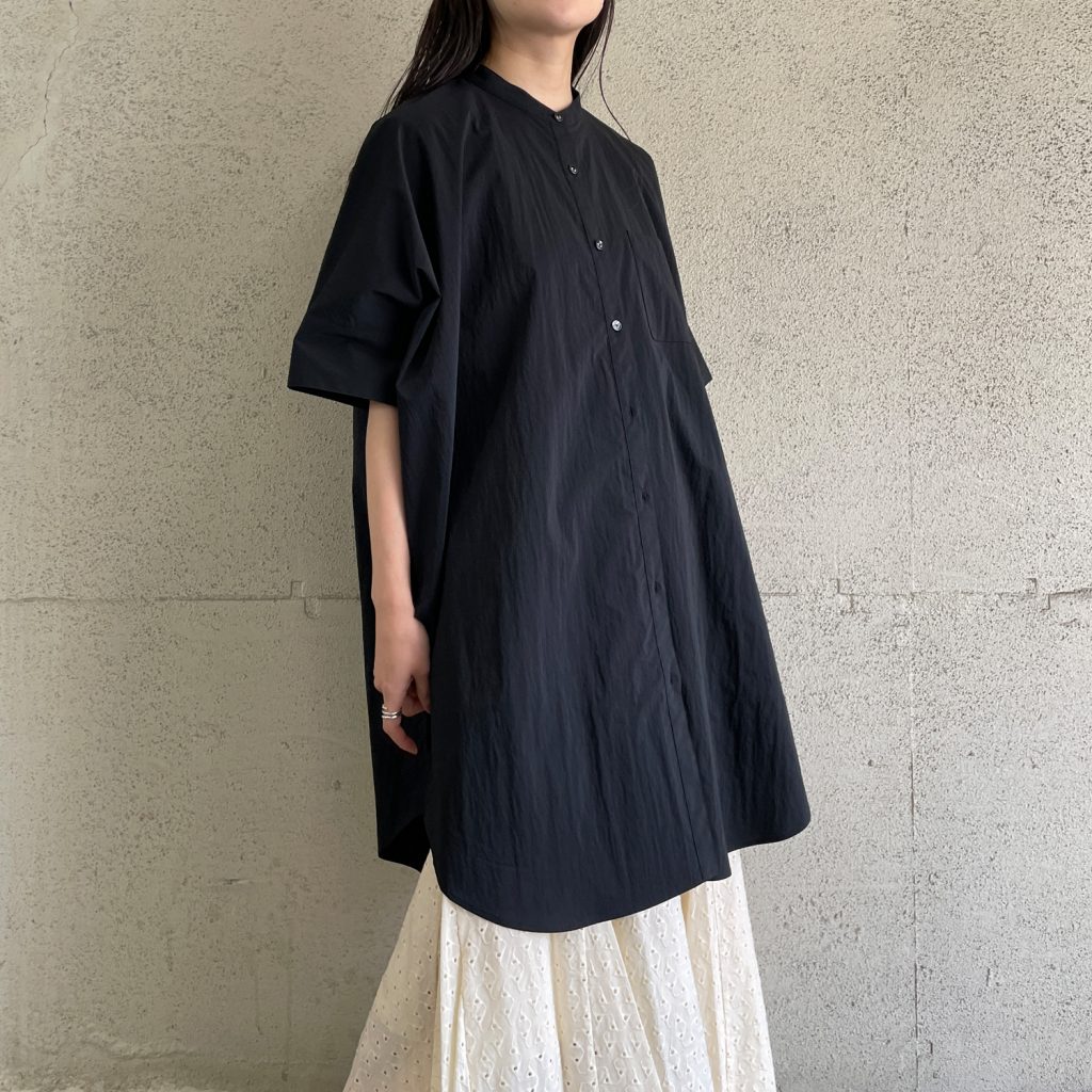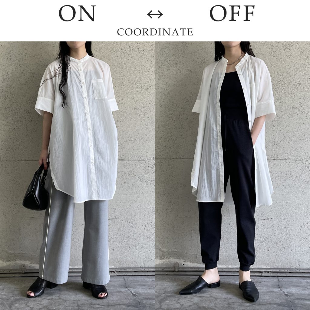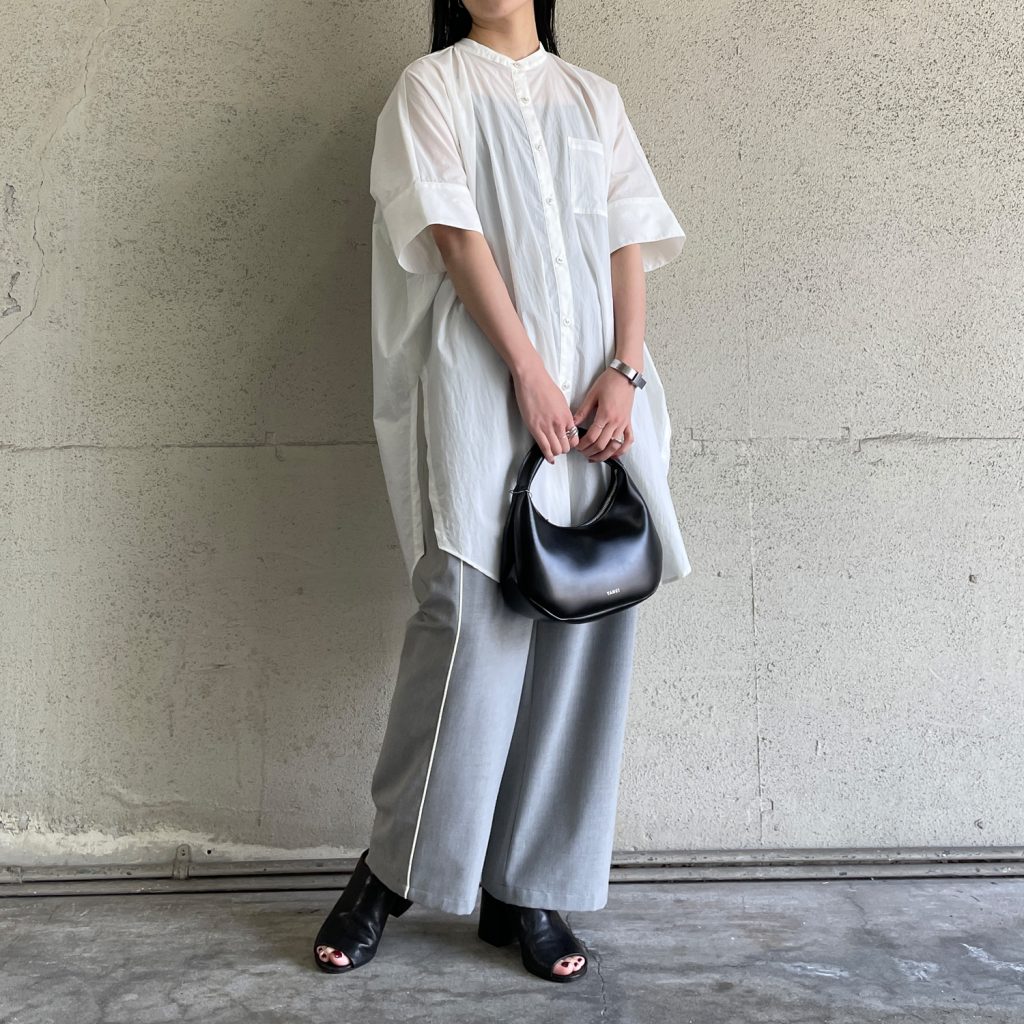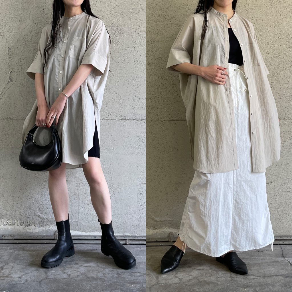 たっぷりとしたサイズ感と軽い着心地で、シワにもなりにくい素材なのでさらっとリラクシーに着られる1枚。