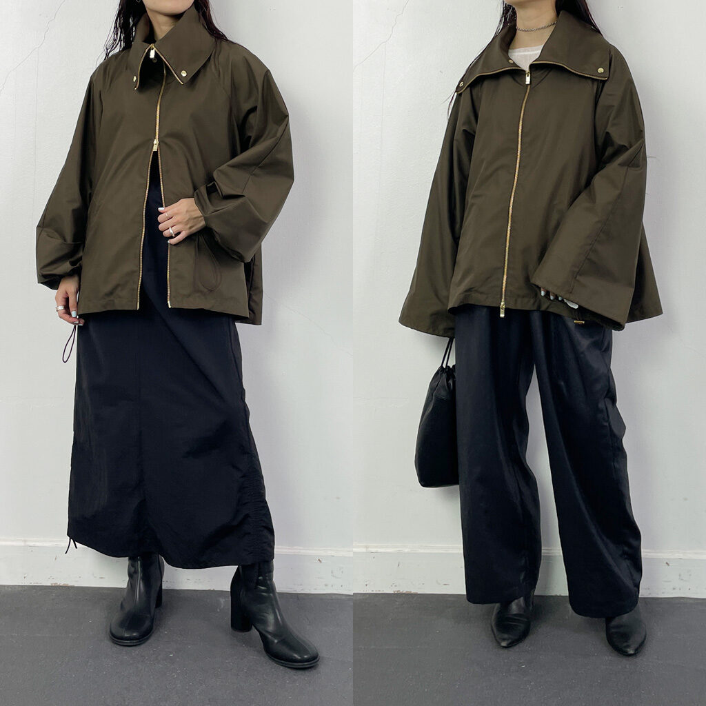 Aラインシルエットと襟・袖のアレンジ可能なデザインが特徴のビックカラーブルゾン。