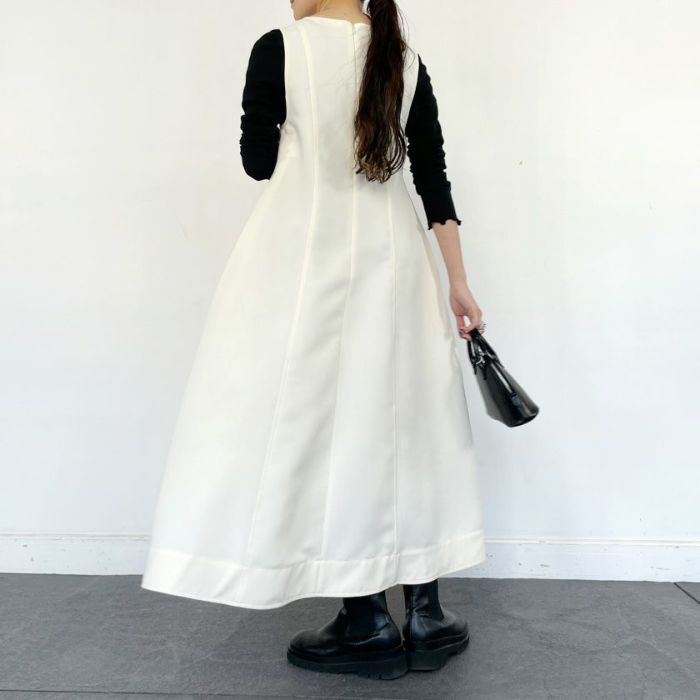 ネックは広すぎないスクエアネックにしており、胸元を気にせず更に着やすいデザインに仕上げました。