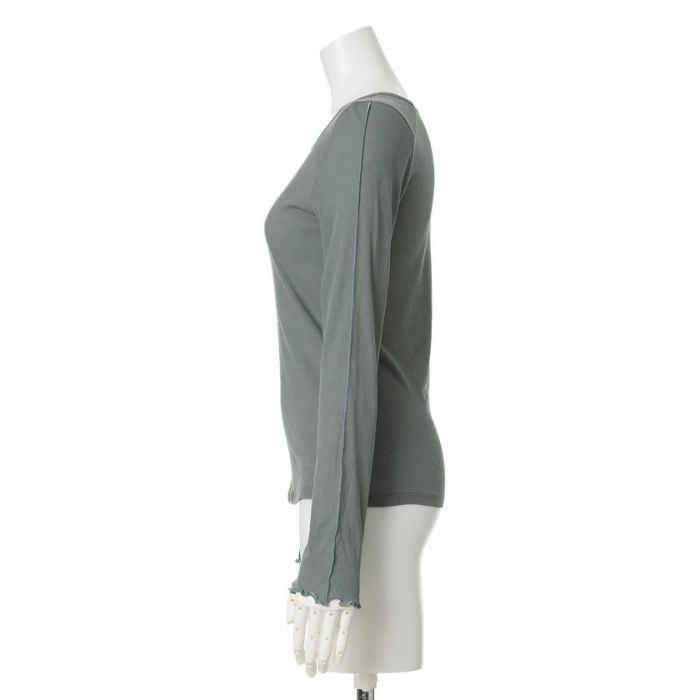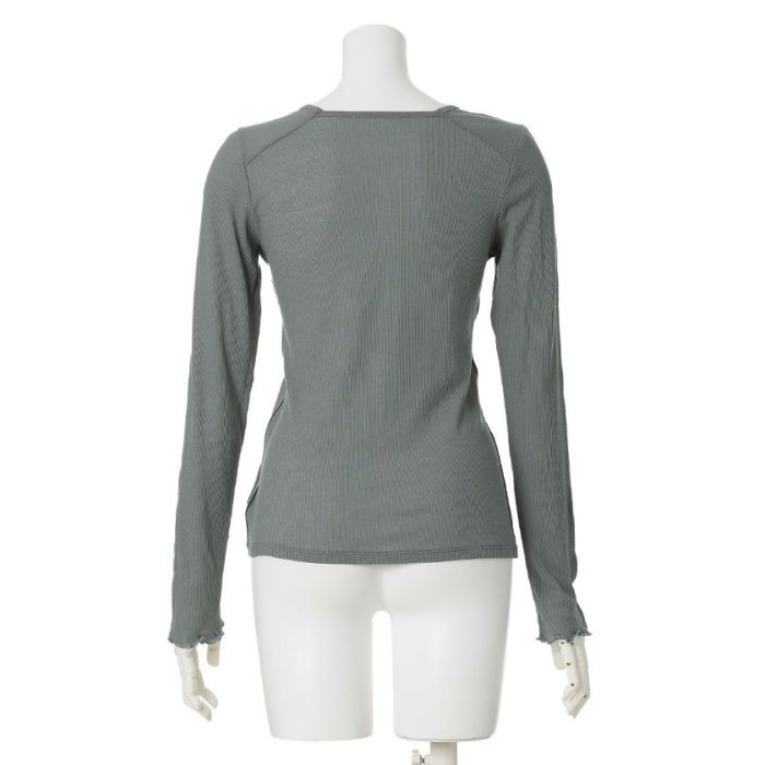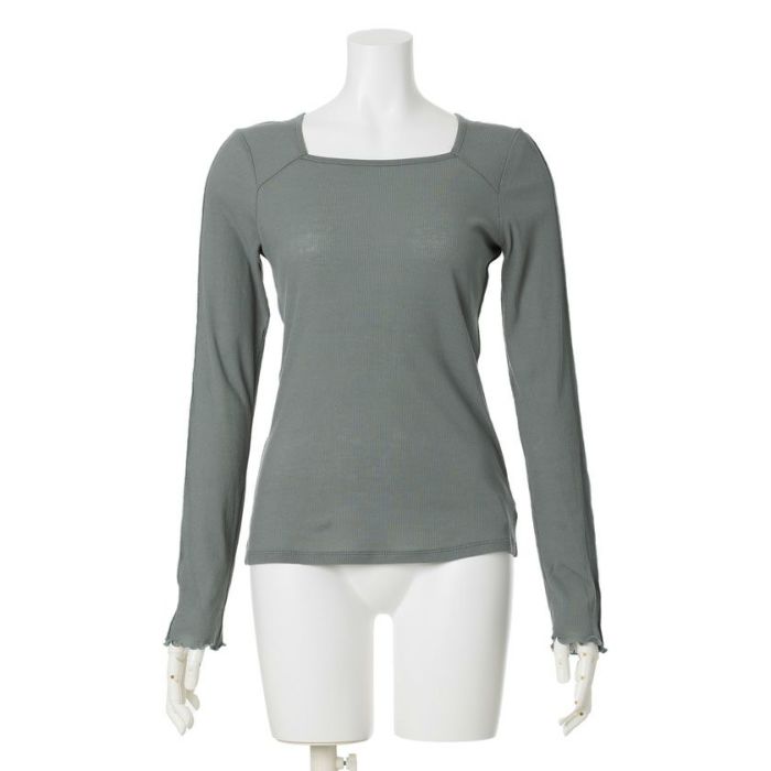 程よい開きのスクエアネックと、メローデザインがポイントになる1枚。