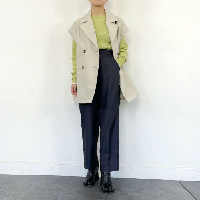 裾を少し絞るとシルエットにも変化が付けられるので、特にベストでの着用の時にオススメ◎