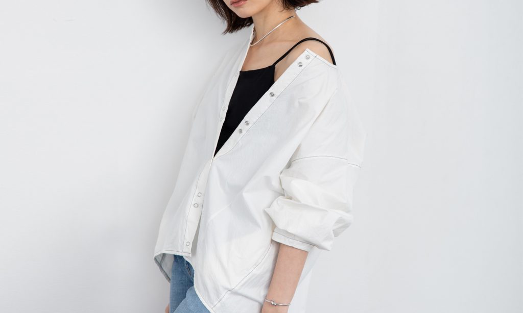 ポケット付きで羽織としても重宝するし、ボタンを留めてプルオーバーのブラウスのように着用するのもオススメです◎