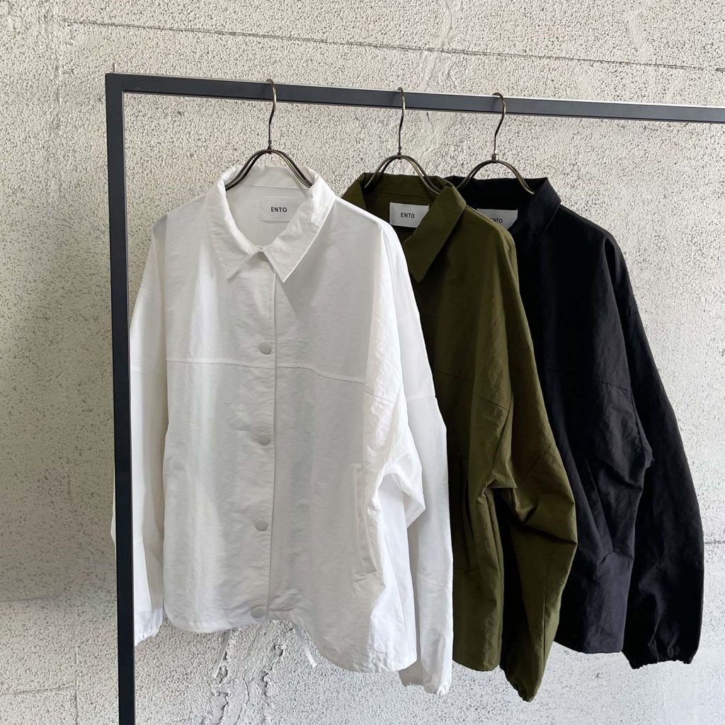 抜け感を楽しめる緩めのサイジングで、ライトアウターとして気軽に使える1枚です。