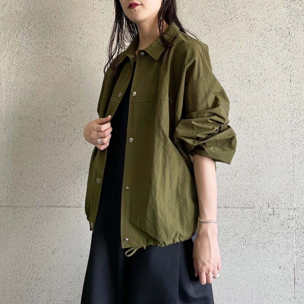 薄手で軽い素材なので、秋から冬にかけてライトアウターとして使いやすく、身幅もゆったりとしているため、中に着こんでもごわごわしにくいのもポイント◎
