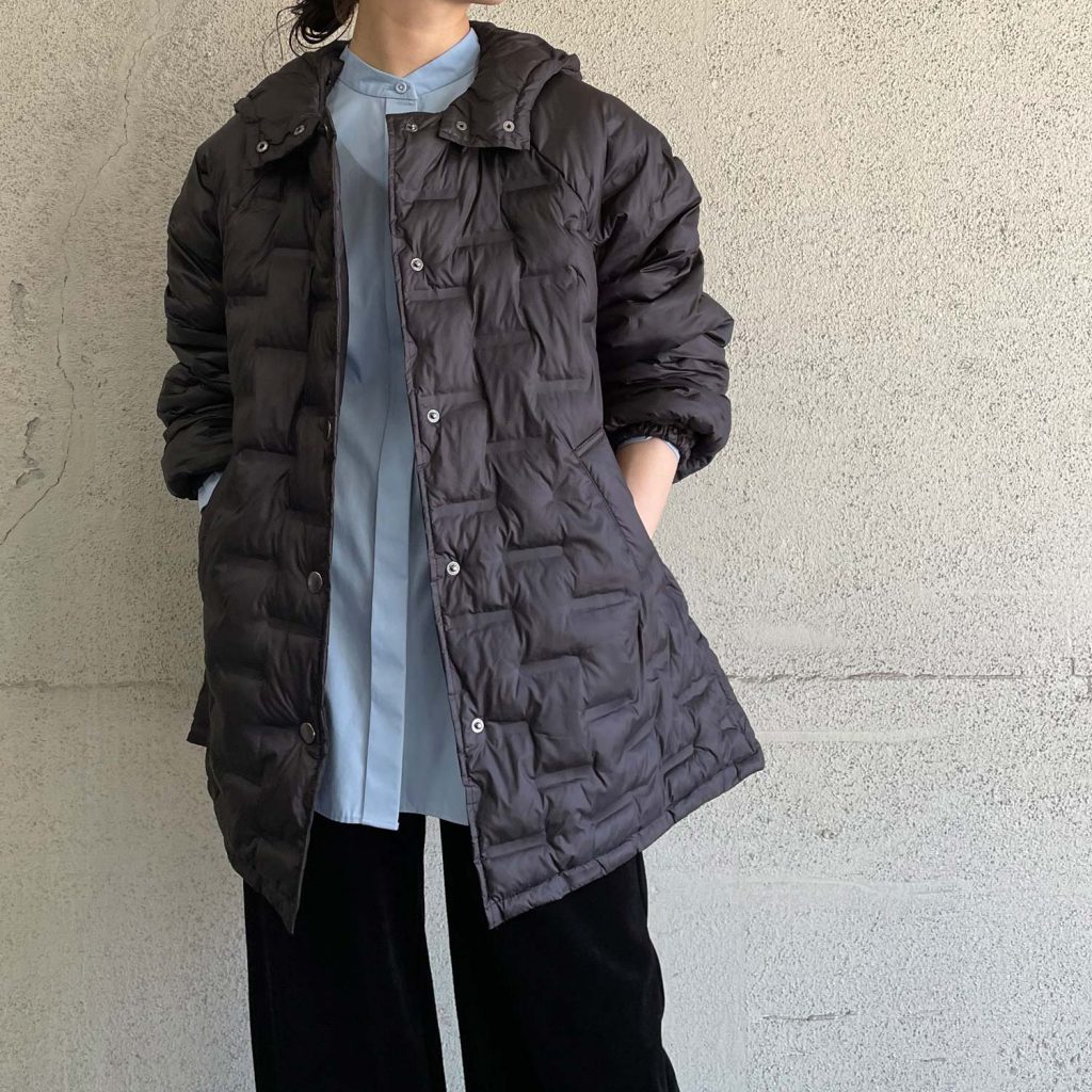 フードが取り外し可能で保温性にも優れた、機能性抜群のキルト中綿コート。