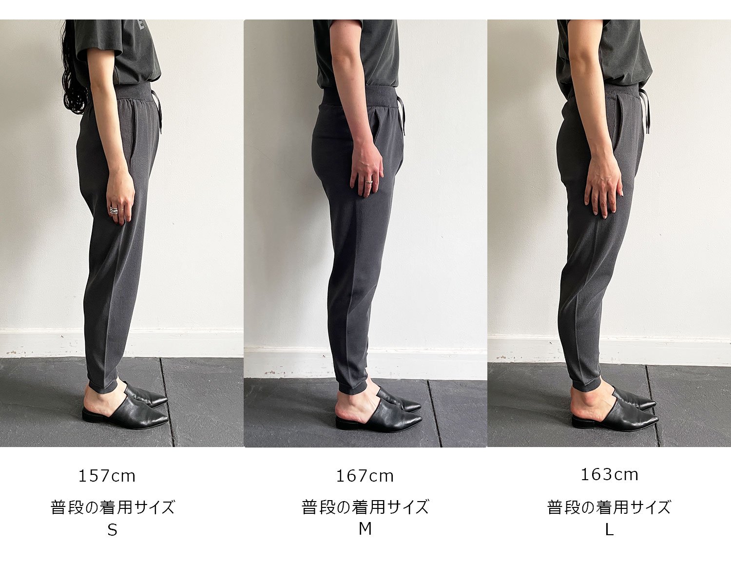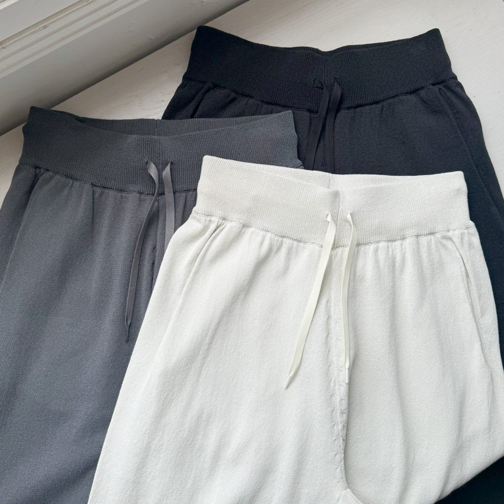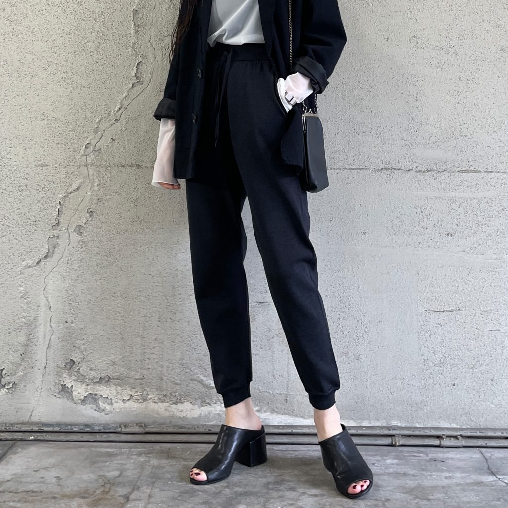 ※セール品は不良品以外の返品・交換不可 さらっとした着心地と、すっきりとしたシルエットが特徴のバナナシルエットニットパンツ。 カラーは『silverwhite / charcoal / sumikuro』の3色展開。 麻のようなシャリ感のある風合いが特徴 清涼感があり吸水速乾にも優れており、春夏にぴったりの着心地。 ウエストは幅広めのリブで腰回りをすっきりと見せ、さらにオールゴムで着脱も簡単。 ポケットがあるのも嬉しいポイントで、洗い可能なのでご自宅でお手入れして頂けます。 ラフなのにきれい見えする、こだわりのシルエット ラインが綺麗に見えるよう、ひざの内側にダーツを入れて湾曲したシルエットに。 また、すっきりとしたリブの裾なので、ハイカットのスニーカーやヒールも合わせやすいデザインです。 落ち着いた色展開とキレイ見えするシルエットで、ジャケットやシャツなどキレイ目なアイテムから幅広く着用できます。 同素材のベストとのセットアップもおすすめです。 ジャケットを合わせてキレイ目コーディネートや、カットソーを合わせてラフなコーディネートも。 合わせるアイテム次第で、オンオフ問わず着回せるアイテムです。