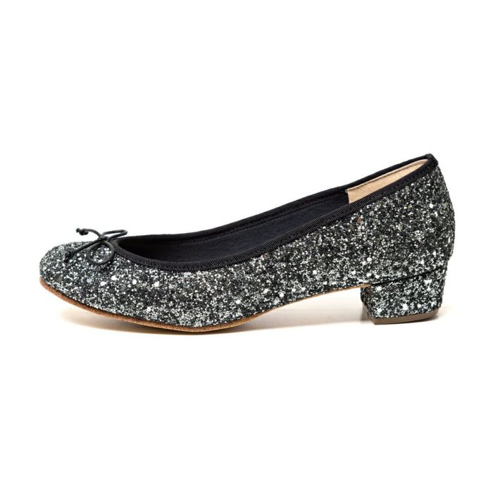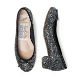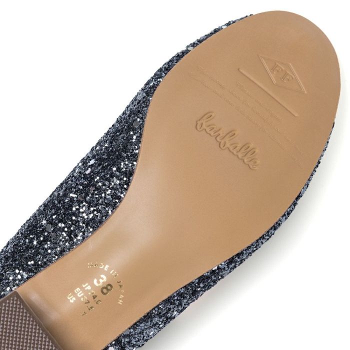 3cmヒールタイプの大粒グリッターバレエシューズがより柔らかくここちよい履き心地にリニューアル! 歩くたびに違う表情を見せる偏光グリッターのきらめきをまとった、まさに主役級の一足。 大粒でも派手になりすぎない、落ち着いたネイビー系カラーのミッドナイトと、ブラック×シルバーのラメがより一層華やかなメタルブラックの2色展開です。 ヒール付きでも長時間履いても疲れにくく、型崩れしにくい製法はそのままに、足を入れた瞬間からふんわりと包み込まれるような履き心地にアップデートしました。 肌に当たる内側部分に柔らかなウレタン素材を使用し、反発力の高い高反発クッションインソールが足裏にかかる体重をしっかり吸収。 屈曲性の高い底材と高反発クッションインソールが蹴りだず力をサポートするため歩きやすさも抜群◎ 安定感のある太めのチャンキーヒールはヒールによる疲れや負担を感じにくいので、普段ヒールパンプスを履きなれない方にも気軽に履いていただけます。 足を美しくきれいに見せてくれる浅めの履き口は、ファルファーレのこだわり。 バレエシューズの愛らしさに加えて、足元にエレガントな印象を添えてくれます。 ドレスアップしたい結婚式などのフォーマル・セミフォーマルシーンはもちろん、卒入園式・卒入学式、謝恩会などのオケージョンシーンにもおすすめ。 カジュアルなアイテムと合わせれば、エレガントな大人コーデに、フレアスカートと合わせれば、ロマンチックなきれいめコーデを楽しめます。 落ち着いたカラー展開でどんなスタイリングにもアクセントとして活躍してくれる一足です。 ※リニューアルにより以前と同じサイズでも足の形によってはサイズ感が異なる場合がございます。 お買い替えの場合でも、サイズ選びがご不安な場合はぜひ「ご試着サービス」をご利用ください。