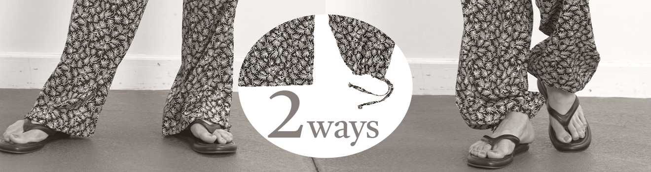 どちらもウエストはゴム仕様で快適な履き心地です。お好みのシルエットや着用シーンに合わせてお選びください。