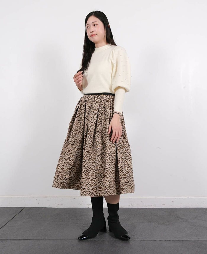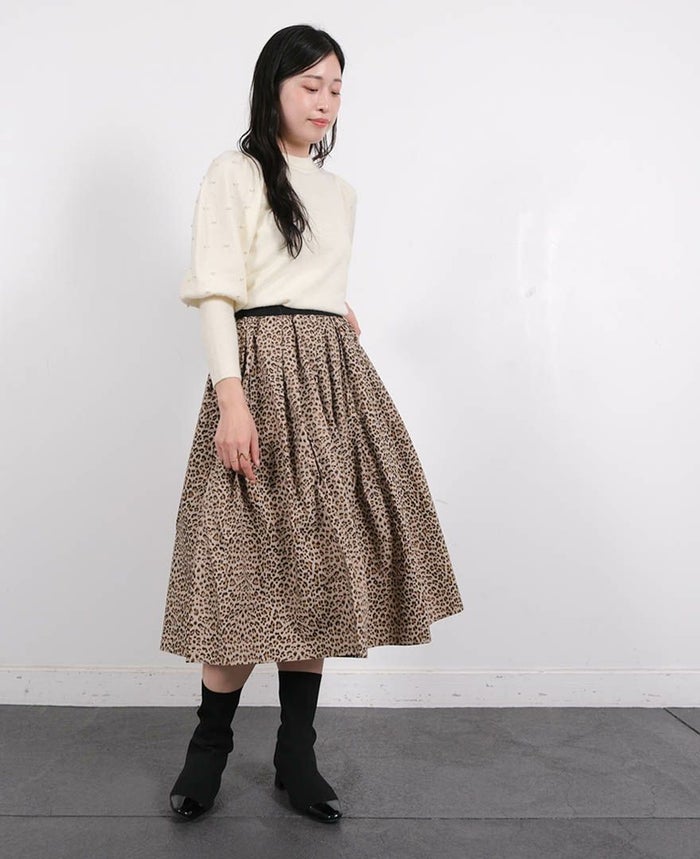 ハードな印象のアニマル柄でも、フレアシルエットのスカートでハード過ぎず、甘辛MIXなスタイルが叶います。