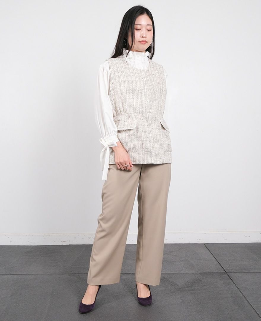 上品なかわいさ 袖フリルニット