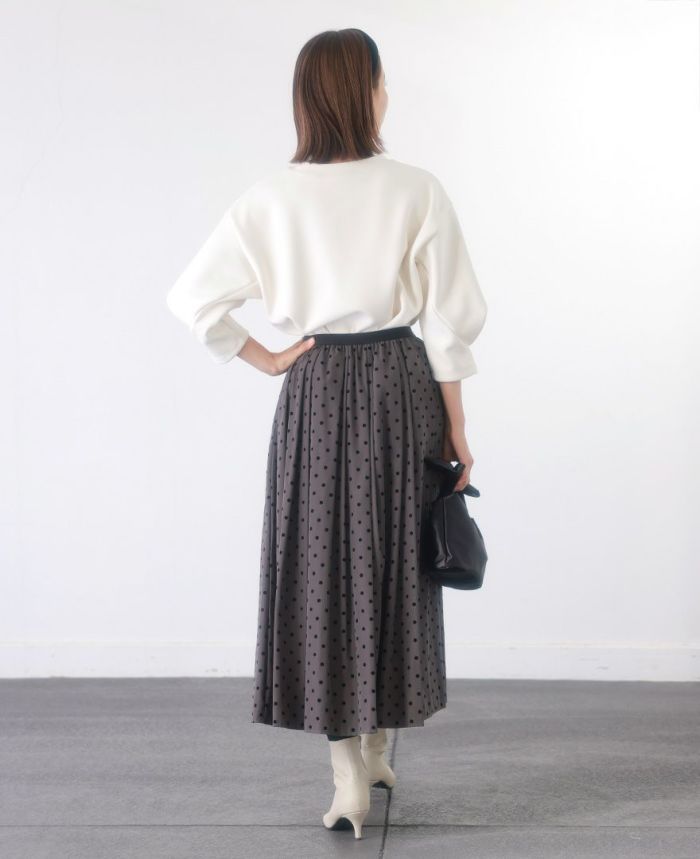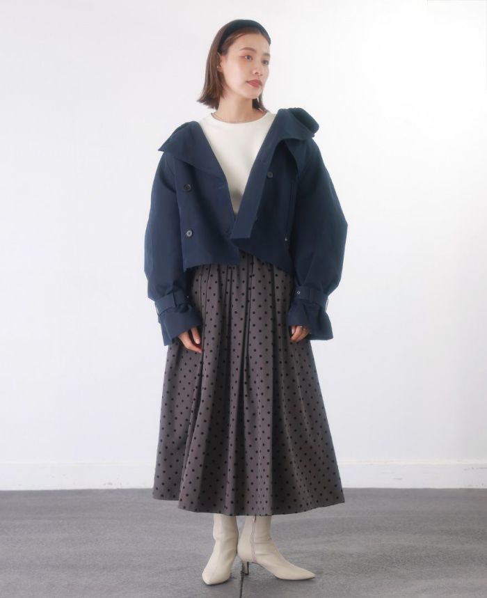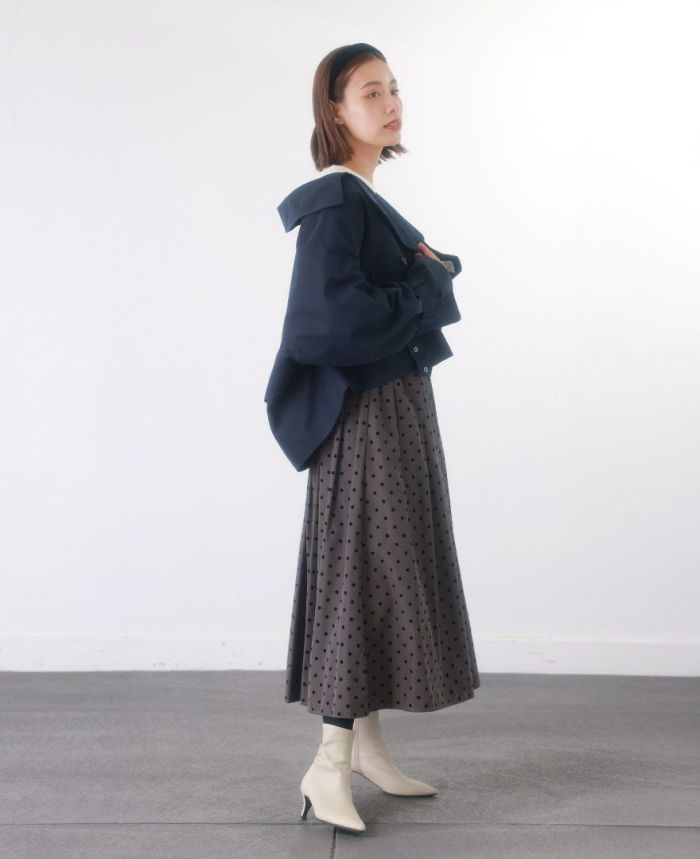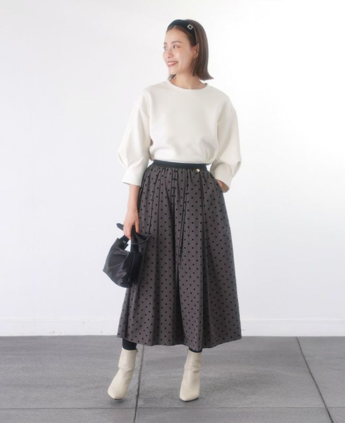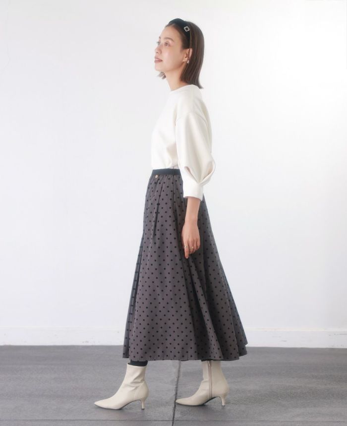 ミモレ丈・マキシ丈よりお好きな着丈がお選びいただけるTRECODEの神戸・山の手フロッキードット柄スカート
