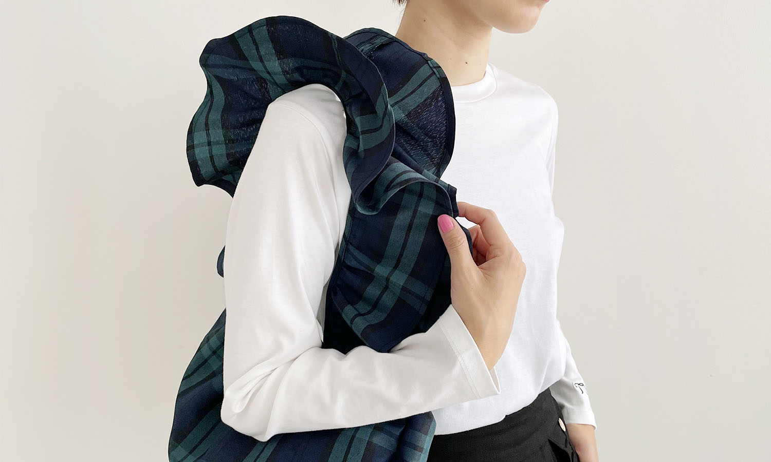 05ホワイト 99ブラック チェック 画像拡大 トップスが華やかに! フリショルアップサイクルバッグ 残りわずか 商品番号 TC212L026E 販売価格 ¥ 5,390 税込 [ 54 ポイント進呈 ] color size 05ホワイト -- 残りわずか お気に入りに登録する カートに入れる 99ブラック -- 在庫切れ お気に入りに登録する — チェック -- 在庫切れ お気に入りに登録する — ギフト資材(必須) 希望しない(+¥0 税込) ギフト資材を希望する(+¥0 税込) ※セルフラッピング 商品情報 サイズ / 素材 スタッフコーデ レビュー 商品情報 トレコードの商品づくりで、なるべく環境負荷の少ない方法を探している中で偶然出会った素敵な生地屋さん。 『全国の余った布を次の使い手さんにつなぐ』というお仕事をされている生地屋さんの生地を使い、トレコードらしい形のバッグを作りました。 持ち手のフリルデザイン 一枚の布から、持ち手の部分まで一体化したバッグは、肩に掛けるとフリルのあるトップスに見えるちょっと不思議な形です。 使っていると「そのトップスかわいいね」と声をかけられるというエピソード付き。 いつものカットソーやニットにフリルをプラスする感覚も楽しい! もちろん、手提げやエコバッグとしても使えます。 フリショルって? “フリショル”は、肩にフリルを添えるようなバッグの形、フリルのショルダーを呼びやすく短くしたもの。 それと、ただ再利用するよりも、デザインやアイデアであたらしい価値を付加する、サスティナブルな取り組みを示す“アップサイクル”もわかりやすく商品名にしました。 かわいいだけじゃなく、ちょっといいことに参加している感覚で使えるバッグをお楽しみいただけるとうれしいです。 カラーは3色 カラーはベーシックで使いやすい"ホワイト"、"ブラック"と、トレコードでも人気の柄物"タータン"の3色です。 トレコードのピンクのオリジナルタグがついているのもポイント。 意外とたっぷり入ります! 持ち手はボリューミーだけど、容量もたっぷりございます。 ペットボトル、お財布、手帳、携帯、ポーチなど必要なものを全部入れられますよ。 サイズ / 素材 大きさ持ち手の長さ底の幅 64cm×40cm34.5cm40cm ※商品を置いて測ったときのおおよそのサイズです。商品により多少の誤差が生じる場合がございます。 素材ホワイト・ブラック:コットン 100% チェック:ポリエステル 100% 原産国日本 スタッフ試着コメント 身長159cm、普段の着用S~Mサイズ。 持ち手が長いので肩にかけやすく、持ちやすいです。 <妄想着こなしシーン> ショッピング ホワイトのニットトップスに黒のタイトスカート、ショートブーツを合わせてシンプルに。 ワンポイントでタータンチェックのフリショルアップサイクルバッグを肩にかけて、ちょっと可愛さをプラス。 × サイズガイド この商品を使ったコーディネート 2023/09/08 2023/09/08 167cm ☆Miki☆ ミキ CLOCHE POPUP CLOCHE 167cm 2022/12/07 2022/12/07 162cm 近藤 コンドウ TRECODE office TRECODE 162cm 2022/09/14 2022/09/14 153cm 福家 愛 フケアイ TRECODE office TRECODE 153cm 2022/09/11 2022/09/11 157cm sachi サチ Jasmin Speaks芦屋店 Jasmin Speaks 157cm 2022/07/27 2022/07/27 167cm ☆Miki☆ ミキ CLOCHE POPUP CLOCHE 167cm 2022/07/08 2022/07/08 167cm ☆Miki☆ ミキ CLOCHE POPUP CLOCHE 167cm 2022/06/22 2022/06/22 158cm sayo【158cm】【骨格ウェーブ】 サヨ CLOCHE POPUP CLOCHE 158cm 2022/05/25 2022/05/25 158cm sayo【158cm】【骨格ウェーブ】 サヨ CLOCHE POPUP CLOCHE 158cm 2022/04/29 2022/04/29 162cm 近藤 コンドウ TRECODE office TRECODE 162cm 2022/04/22 2022/04/22 153cm 福家 愛 フケアイ TRECODE office TRECODE 153cm 2022/04/12 2022/04/12 153cm 福家 愛 フケアイ TRECODE office TRECODE 153cm 2022/03/26 2022/03/26 153cm 福家 愛 フケアイ TRECODE office TRECODE 153cm 2022/03/14 2022/03/14 153cm 福家 愛 フケアイ TRECODE office TRECODE 153cm 2022/03/01 2022/03/01 153cm 福家 愛 フケアイ TRECODE office TRECODE 153cm 2022/02/03 2022/02/03 153cm 福家 愛 フケアイ TRECODE office TRECODE 153cm 2022/02/02 2022/02/02 158cm sayo【158cm】【骨格ウェーブ】 サヨ CLOCHE POPUP CLOCHE 158cm 2022/01/21 2022/01/21 153cm 福家 愛 フケアイ TRECODE office TRECODE 153cm 2022/01/15 2022/01/15 153cm 福家 愛 フケアイ TRECODE office TRECODE 153cm 2022/01/10 2022/01/10 157cm rin☺︎ リン TRECODE 157cm 2021/12/11 2021/12/11 153cm 福家 愛 フケアイ TRECODE office TRECODE 153cm お客さまのレビュー 一緒に見られているアイテム