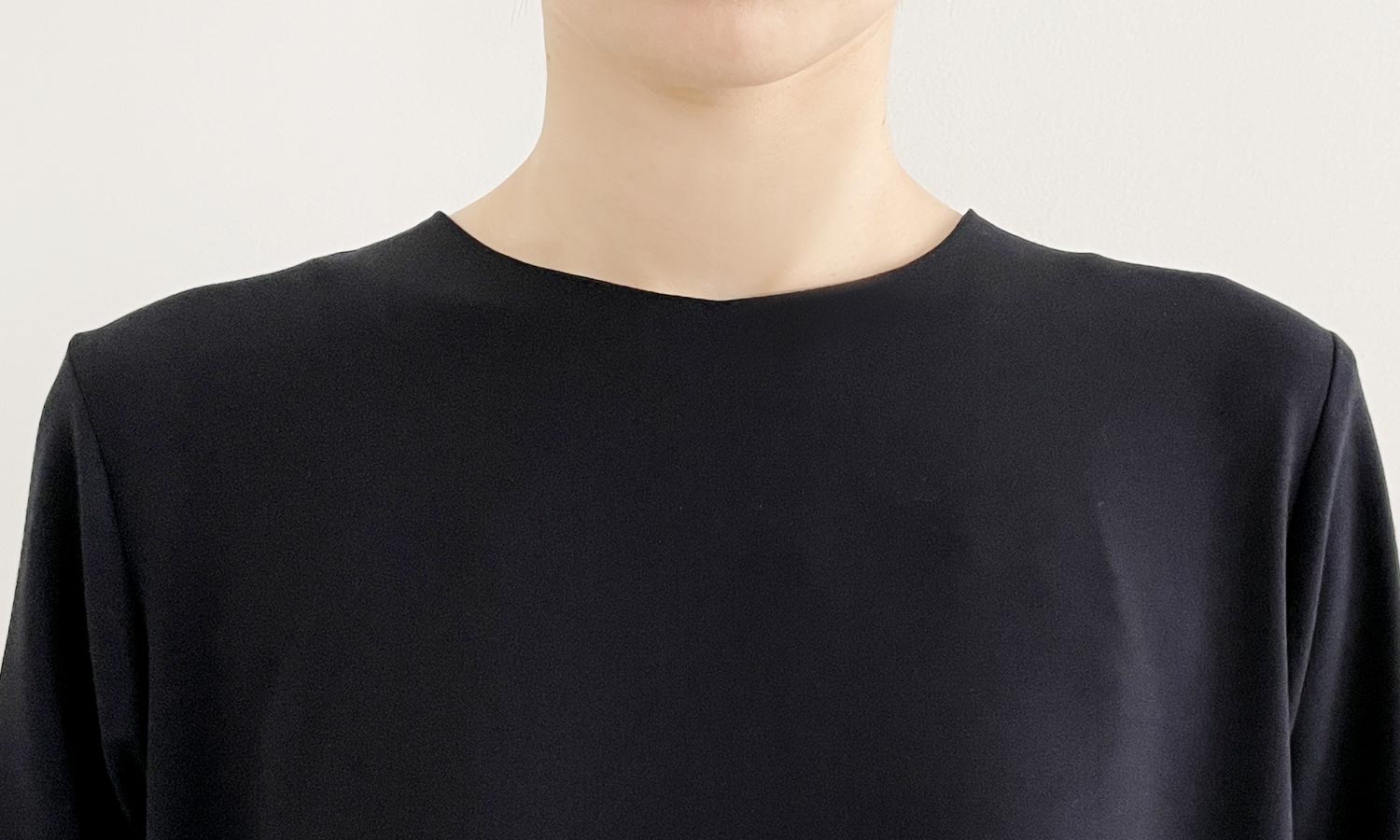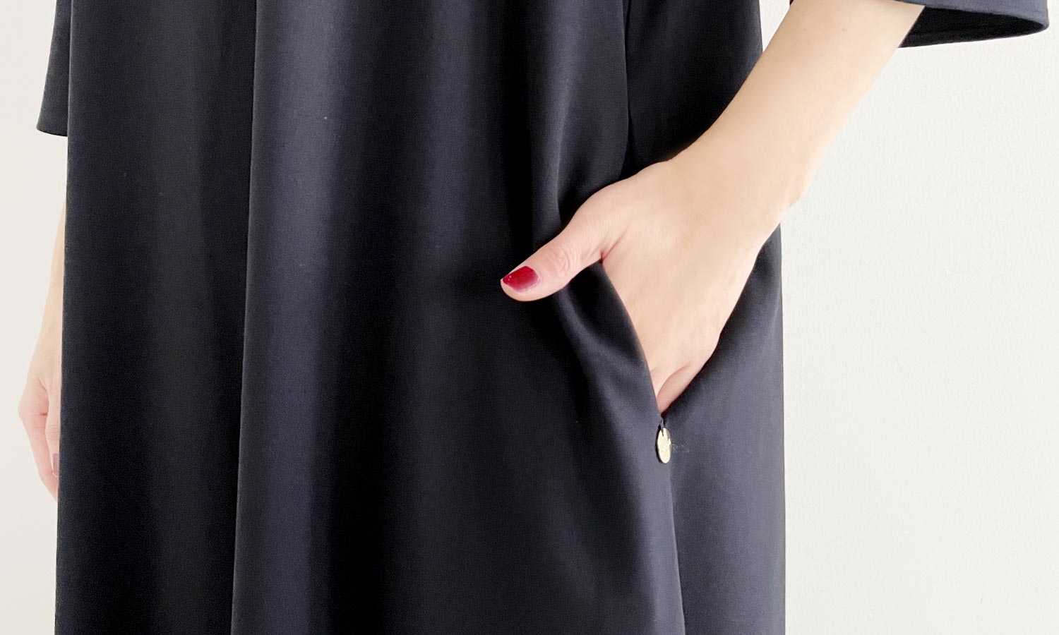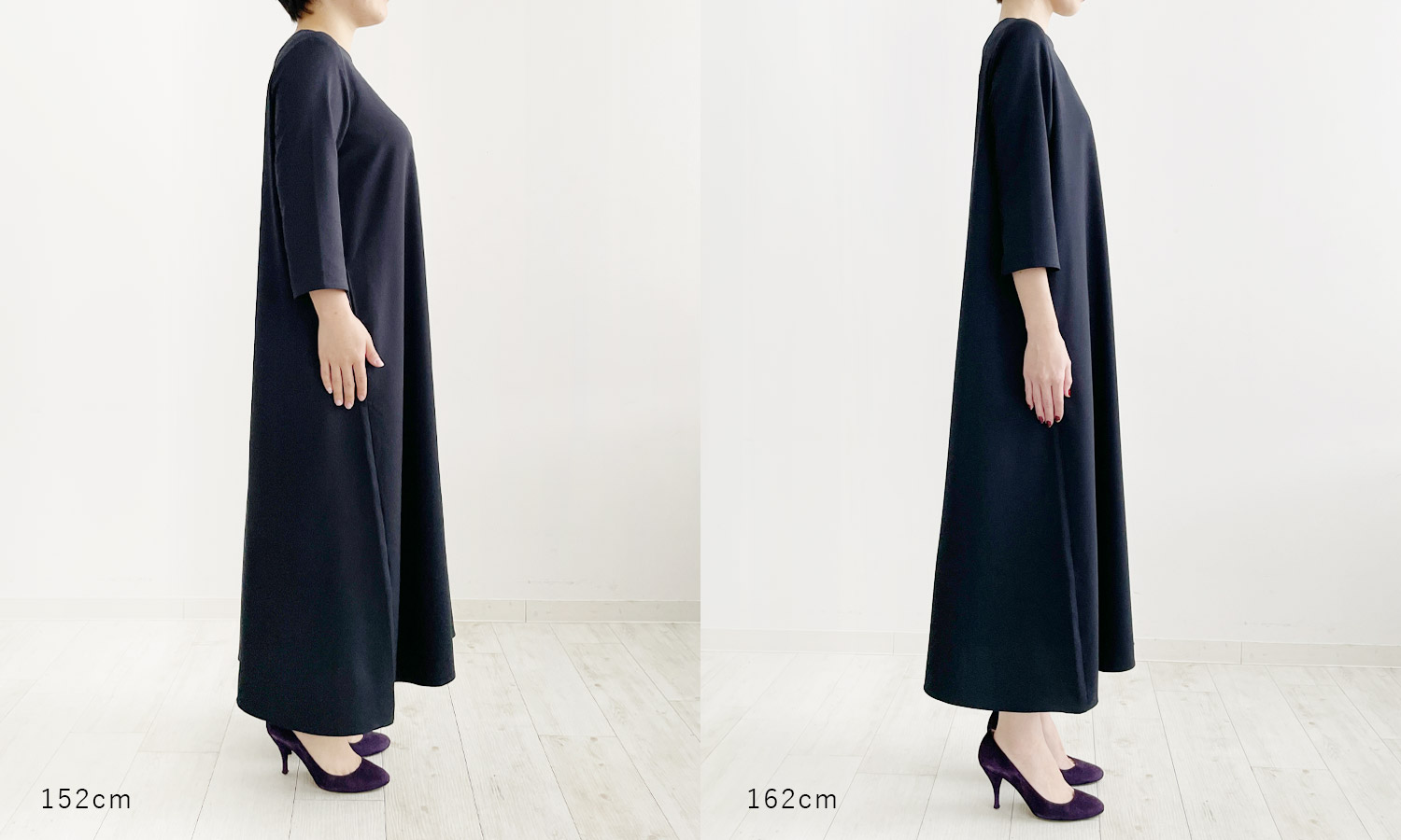 体の線を拾わないAラインシルエット。落ち感のあるデザインで大人上品さを感じる佇まいに。