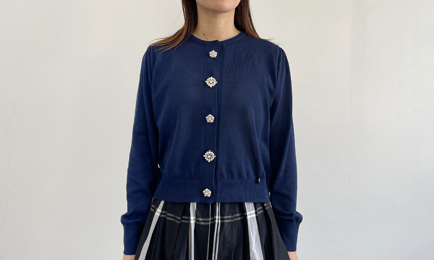 68ネイビー 06オフホワイト 25イエロー 51ラベンダー 99ブラック 51ラベンダー 25イエロー 68ネイビー 06オフホワイト 99ブラック 06オフホワイト 51ラベンダー 25イエロー 68ネイビー 99ブラック 画像拡大 華やかなビジューがアクセント 【70%OFF】ビジューカーディガン 残りわずか 商品番号 TC241L001E 通常価格 ¥ 14,300 のところ 販売価格 ¥ 4,290 税込 [ 43 ポイント進呈 ] 販売期間 2025/12/04 20:00 〜 color size 06オフホワイト 38 在庫切れ お気に入りに登録する — 68ネイビー 38 お気に入りに登録する カートに入れる 25イエロー 38 在庫切れ お気に入りに登録する — 51ラベンダー 38 在庫切れ お気に入りに登録する — 99ブラック 38 在庫切れ お気に入りに登録する — ギフト資材(必須) 希望しない(+¥0 税込) ギフト資材を希望する(+¥0 税込) ※セルフラッピング ※セール品のため、不良品以外の返品・交換はご遠慮ください。 商品情報 サイズ / 素材 スタッフコーデ レビュー 商品情報 アクセサリー要らずの華やかデザイン シンプルなデザインにビジューの輝きが映えるビジューカーディガン。 お袖は、程よいパフスリーブで女性らしくフェミニンな印象をプラス。 ボタンを開けて羽織りとしてはもちろん、ボタンを閉めてプルオーバーとしてもご着用いただけます。 着丈は、コンパクトですっきりとしているので、神戸・山の手スカートにもバランス良く合わせられます。 内側ボタンですっきり見え 首元は、開きすぎていないクルーネックデザインです。 内側にボタンがあるので、閉めて着た際もすっきり見えが叶います。 ※ボダンは、カーディガンと同色のものを使用しております。 高級感のあるビジューモチーフ 2種類の異なったビジューがきらきらと光り輝き、大人可愛いを演出してくれます。 きちんと感のあるカーディガンなので、普段使いはもちろん、オケージョンシーンにもおすすめです。 コットンが入っているのでサラリとした手触りで、季節問わずオールシーズン使えるアイテムです。 生地の薄さ:薄手 透け感:あり 伸縮性:あり 裏地:なし ポケット:なし サイズ サイズ 着丈(ネックポイント~裾) 身幅(両脇間) 袖丈 38 約50cm 約52cm 約60cm ※商品を置いて測ったときのおおよそのサイズです。商品により多少の誤差が生じる場合がございます。 素材 綿53% ポリエステル47% 原産国 日本 スタッフ試着コメント 身長157cm 普段のサイズS~M 肌触りもさらっとしていて着心地のいいカーディガンです! 丈感も長すぎず短すぎずでボトムスにインすることもできますし、 そのまま着用してもダボっとしないのでいろんな着こなしが出来ると思います♪ 程よい透け感があるのでどのお色味でもインナーは必須です。 × サイズガイド この商品を使ったコーディネート 2025/11/08 2025/11/15 163cm manami マナミ TRECODE office TRECODE 163cm 2025/11/08 2025/11/08 163cm manami マナミ TRECODE office TRECODE 163cm 2025/06/15 2025/06/18 153cm 福家 愛 フケアイ CLOCHE POPUP CLOCHE 153cm 2025/03/24 2025/05/02 157cm erika エリカ CLOCHE POPUP CLOCHE 157cm 2025/03/24 2025/04/14 157cm erika エリカ CLOCHE POPUP CLOCHE 157cm 2025/03/09 2025/03/23 157cm erika エリカ CLOCHE POPUP CLOCHE 157cm 2025/03/09 2025/03/21 157cm erika エリカ CLOCHE POPUP CLOCHE 157cm 2025/03/09 2025/03/20 157cm erika エリカ CLOCHE POPUP CLOCHE 157cm 2025/03/09 2025/03/11 157cm erika エリカ CLOCHE POPUP CLOCHE 157cm 2024/04/26 2024/05/12 158cm sayo【158cm】【骨格ウェーブ】 サヨ CLOCHE POPUP CLOCHE 158cm 2024/05/01 2024/05/01 167cm ち ひ ろ チヒロ TRECODE office TRECODE 167cm 2024/04/28 2024/04/30 167cm ☆Miki☆ ミキ CLOCHE POPUP CLOCHE 167cm 2024/04/28 2024/04/28 158cm sayo【158cm】【骨格ウェーブ】 サヨ CLOCHE POPUP CLOCHE 158cm 2024/04/26 2024/04/26 158cm sayo【158cm】【骨格ウェーブ】 サヨ CLOCHE POPUP CLOCHE 158cm 2024/03/25 2024/03/25 157cm みやもと ミヤモト CLOCHE office CLOCHE 157cm 2024/03/16 2024/03/16 162cm 近藤 コンドウ TRECODE office TRECODE 162cm 2024/03/06 2024/03/06 167cm ち ひ ろ チヒロ TRECODE office TRECODE 167cm お客さまのレビュー 一緒に見られているアイテム