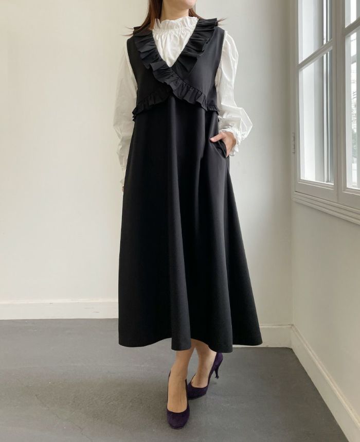 バックネックからバストライン下辺りまであるフリルデザインがワンポイントに。