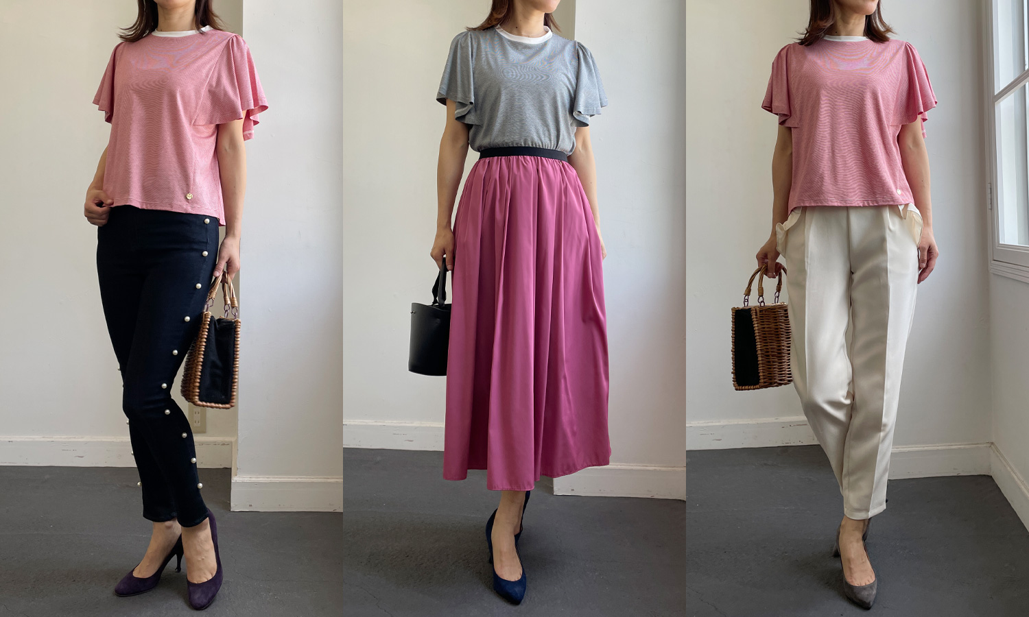 75レッド 68ネイビー 68ネイビー 75レッド 68ネイビー 68ネイビー 75レッド 画像拡大 接触冷感でさらっと着れる一枚! 【50%OFF】フレアスリーブボーダーカットソー 商品番号 TC241L015E 通常価格 ¥ 9,790 のところ 販売価格 ¥ 4,895 税込 [ 49 ポイント進呈 ] color size 75レッド 38 お気に入りに登録する カートに入れる 68ネイビー 38 在庫切れ お気に入りに登録する — ギフト資材(必須) 希望しない(+¥0 税込) ギフト資材を希望する(+¥0 税込) ※セルフラッピング ※セール品のため、不良品以外の返品・交換はご遠慮ください。 商品情報 サイズ / 素材 スタッフコーデ レビュー 商品情報 程良いボリューム感の袖がアクセントになり、1枚で華やかな印象のフレア袖ボーダーカットソーが登場。デイリー使い間違いなし!なアイテムです♡ 暑い日も快適な着心地 さらっとした肌触りで着心地も良く、接触冷感素材を使用しているので夏場でも快適にご着用いただけます。 程良いボリューム感の袖がアクセントになり、1枚で華やかな印象のフレアスリーブボーダーカットソー。 身頃部分はシンプルですっきりとしたシルエットなので、どんなボトムスにも合わせやすく着回し力の高い一枚です。 リブ部分はホワイトカラーで清潔感ある印象に。太めのリブデザインで夏らしさと爽やかさをプラス。 フレア袖ですっきり細見え ノースリーブにフレア袖がドッキングしたデザイン。肩と二の腕がしっかりと隠れるのですっきり細見えに。 さらに、落ち感のあるふわりと広がるフレアスリーブがエレガントで涼し気な印象を与えてくれます。 一枚で楽ちんきれい見え ピッチの細いボーダーでカジュアルになり過ぎず、首元は開き過ぎていないクルーネックデザインできちんと感も◎。 ボトムスインしてもアウトしてもバランスがとりやすいサイズと丈感で、幅広いコーディネートを楽しんでいただけるアイテムです。 パンツはもちろん、神戸・山の手スカートに合わせたきれいめスタイルもオススメです。 程よくデザイン性もあり一枚でオシャレ見えします。幅広いアイテムに合わせやすくデイリー使いにピッタリのアイテムです。 生地の薄さ:薄手 透け感:なし 伸縮性:あり 裏地:なし サイズ サイズ 着丈(ネックポイント~裾) 身幅(両脇間) 袖丈 フリー 約54cm 約50cm 約20cm ※商品を置いて測ったときのおおよそのサイズです。商品により多少の誤差が生じる場合がございます。 素材 本体 セルロース70% 綿30%衿 テンセル70% ポリエステル30% 原産国 日本 スタッフ試着コメント 身長167cm、普段の着用サイズM~L。 ちょうどよい丈感で身幅もゆとりがあり楽に着れました。 気になる二の腕をさりげなくカバーしてくれるデザインでフレアスリーブデザインが可愛いです! デザイン性もあり、一枚で着てもオシャレ見えします。 スカートはもちろんパンツにも合わせやすいアイテムです。 × サイズガイド この商品を使ったコーディネート 2025/06/18 2025/06/18 152cm まつざき マツザキ TRECODE office TRECODE 152cm 2025/05/22 2025/05/23 153cm 福家 愛 フケアイ CLOCHE POPUP CLOCHE 153cm 2024/05/05 2024/08/26 167cm ☆Miki☆ ミキ CLOCHE POPUP CLOCHE 167cm 2024/04/17 2024/04/17 167cm ち ひ ろ チヒロ TRECODE office TRECODE 167cm お客さまのレビュー RECOMMEND ITEMこの商品におすすめな商品 神戸・山の手スカート ネイビー9,900円(税込) 神戸・山の手スカート ミルク9,900円(税込) キルティングスニーカー13,200円(税込) サイドパールスキニーデニム13,200円(税込) ウエストシャーリングサマースカート11,000円(税込) 一緒に見られているアイテム