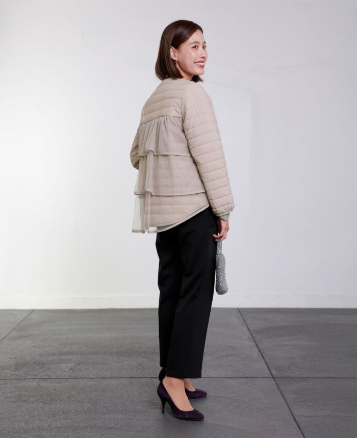 ティアードになるよう配列したバックチュールデザインが目を惹く大人可愛いデザインのジャケット