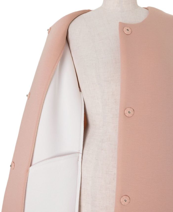 お袖にボリュームがある分身頃はすっきりとデザインし、メリハリのあるシルエットに仕上げました。