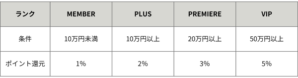 詳しい特典内容は新会員ランク制度のページをご確認ください。