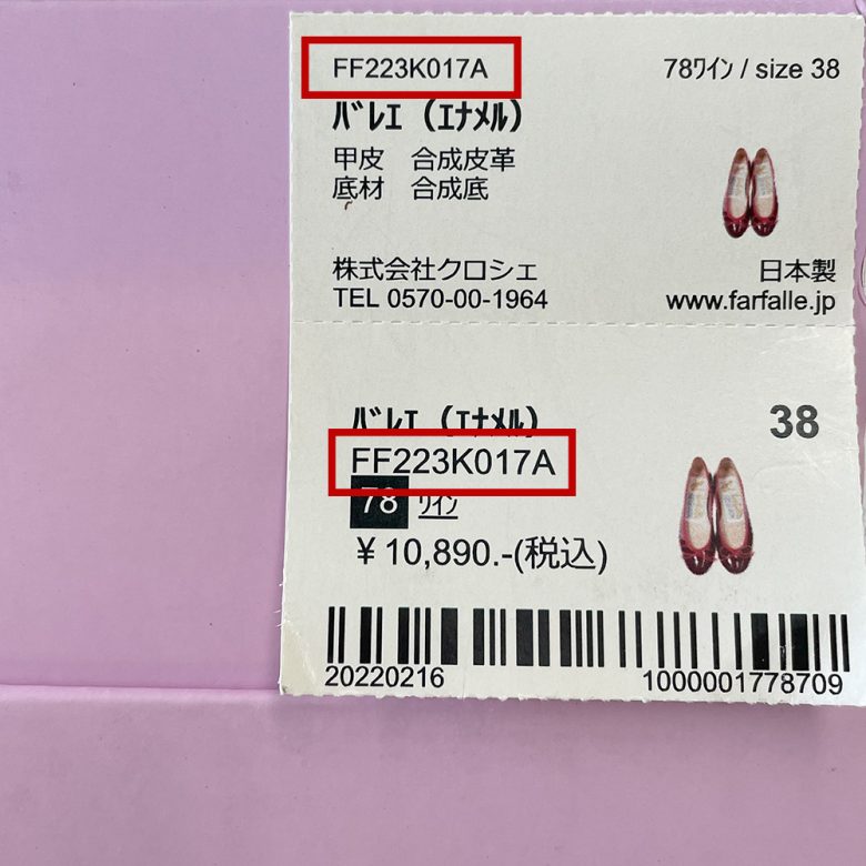 服の場合は選択表記、靴の場合は箱をご確認くださいませ。