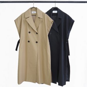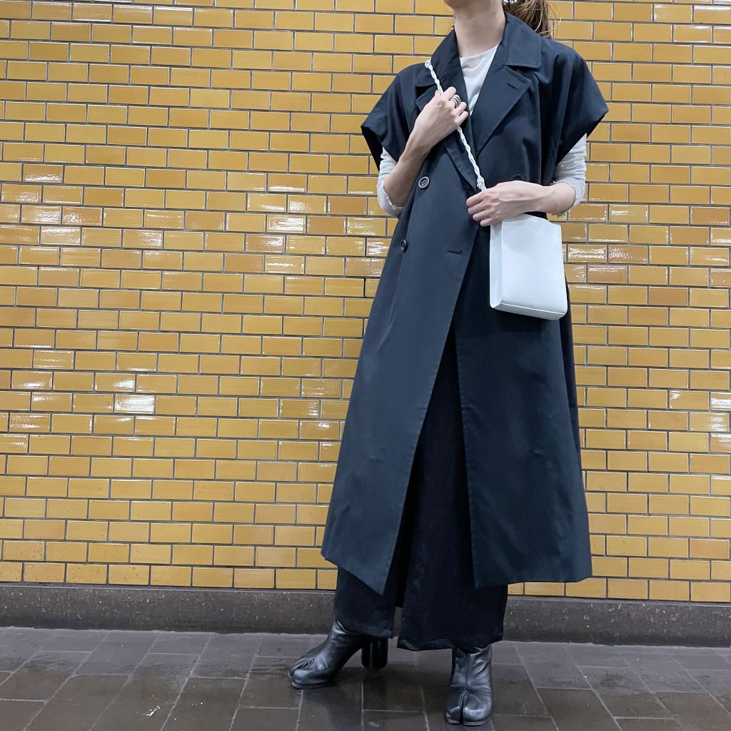 トレンチベストはロンTからレザージャケット、Gジャンやキルティングコートなど、色々なアイテムとの重ね着が楽しめる1枚。