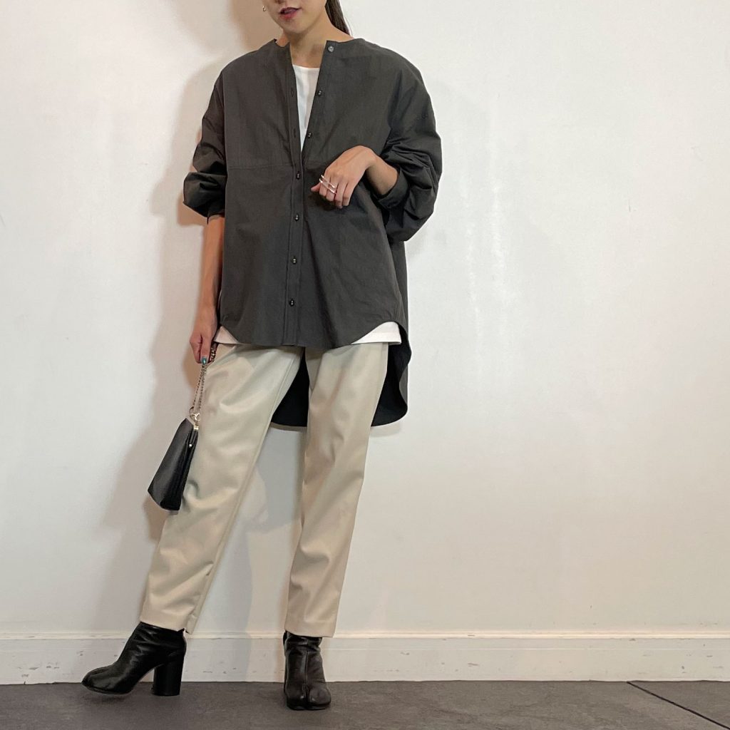 ノーカラーシャツジャケットでメンズライクに着こなして