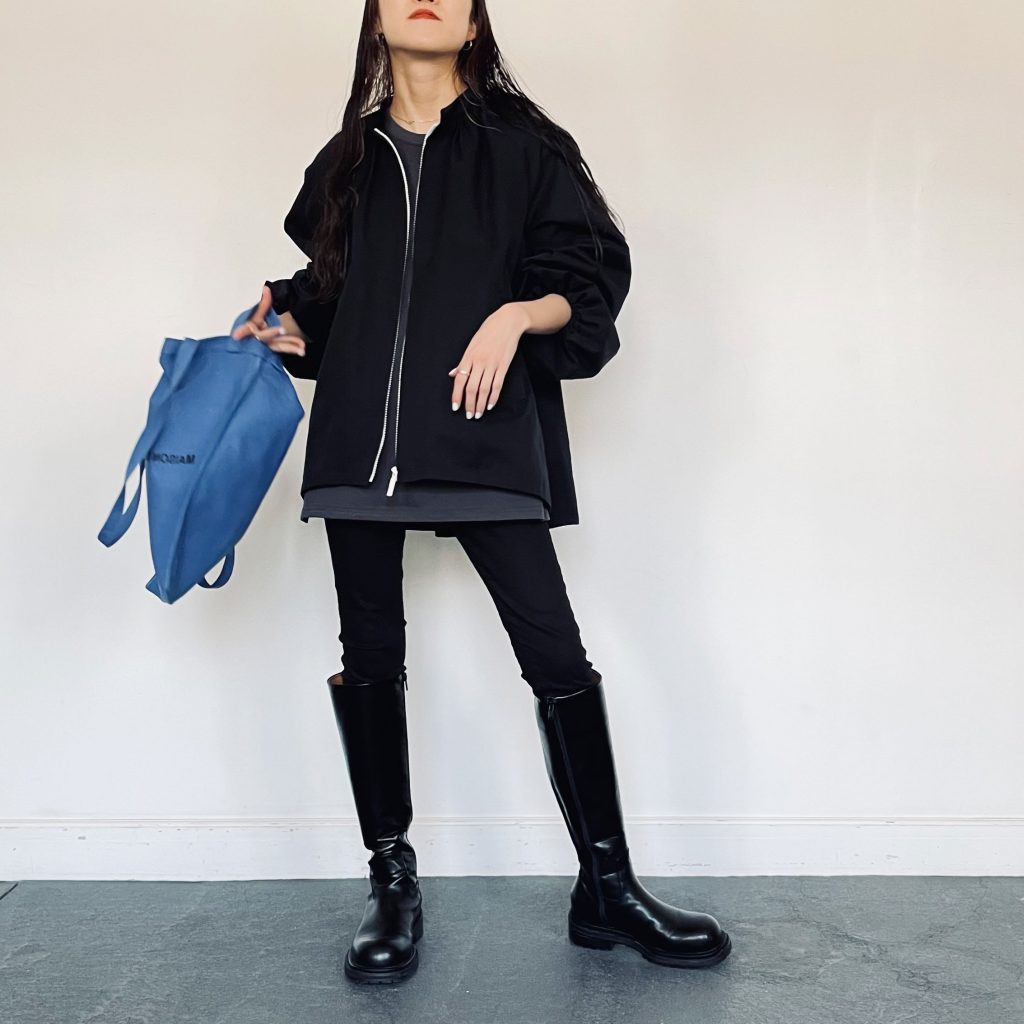 フレアーブルゾン×トレンドのロングブーツできれいめカジュアルに