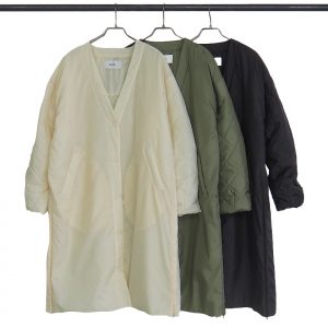 サステナブルな素材とサイドジップのデザイン「ノーカラーキルティングコート」