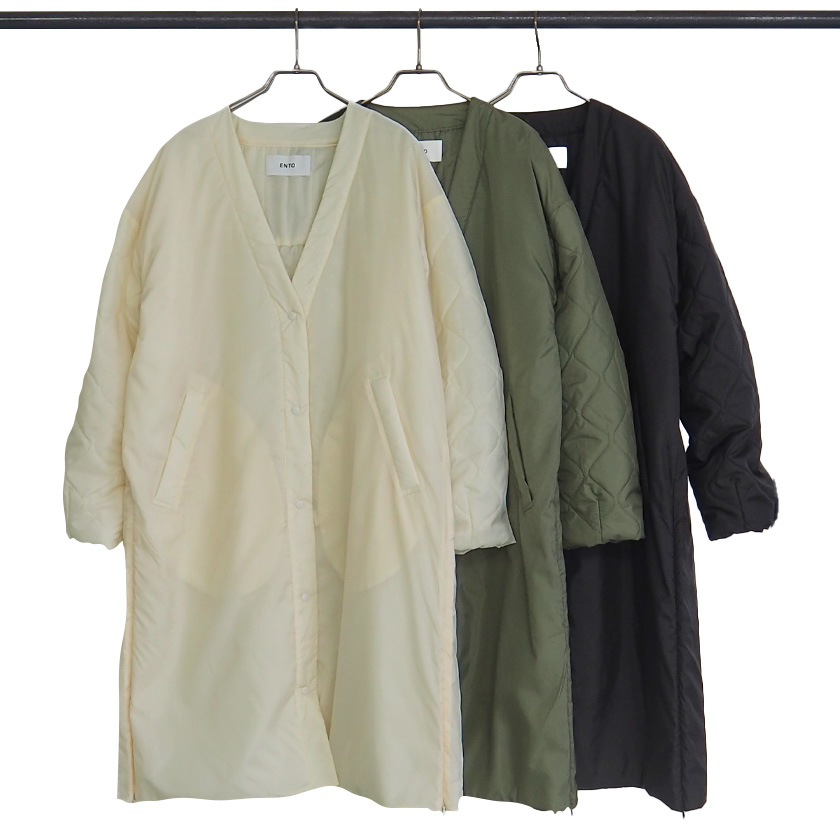 コート:ENTO ノーカラーキルティングコート¥25,300(税込)