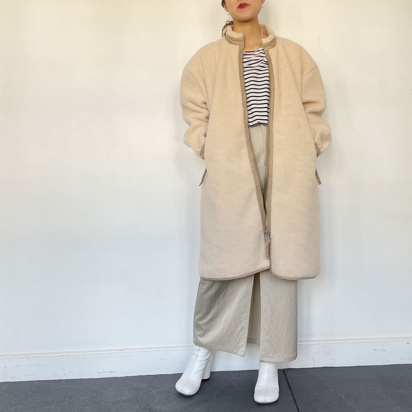【アイボリー】スタンドカラーボアコートで大人可愛いコーディネート